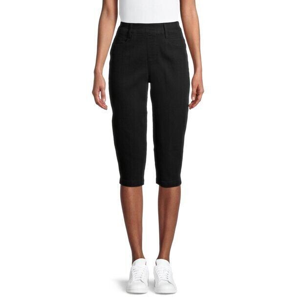 Time and Tru Women's Woven Pull-On Capri Pants High Rise sz (6) Black Soot Denim
