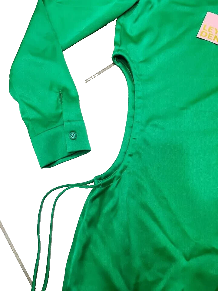 LEYDEN Women Junior Side Cutout Long Sleeve Satin Dress Kelly Green Size Small
