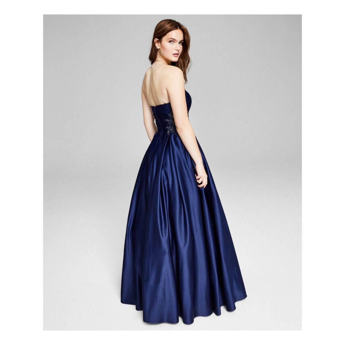 Blondie Nites Womens Juniors Blue Sweetheart Neck Evening Gown Pockets Size 17