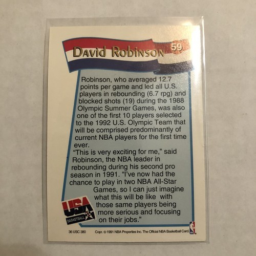 1992 NBA Hoops USA David Robinson #59. Condition is Used. Shipped with Standard Envelope for Trading Cards, Stamps, Postcards Coins up to $20.
