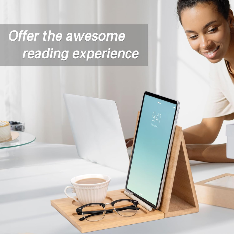 ?Gift Package Wide Application? Our book nook stand packed in an exquisite gift box, can be given to anyone as the present directly. The unique triangle shape adds a modern touch, making it an ideal addition to your nightstand, office desk, bedrooms, studies, living rooms. The versatile and graceful wood tone makes it seamlessly fits into many scenes, a versatile and stylish addition to various settings