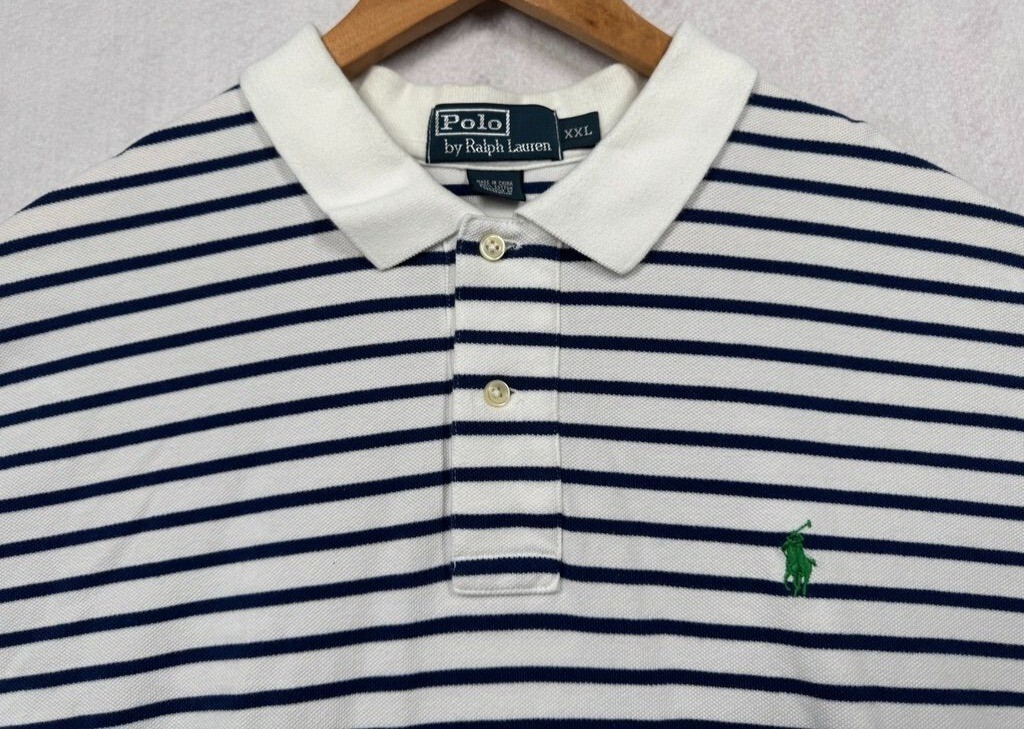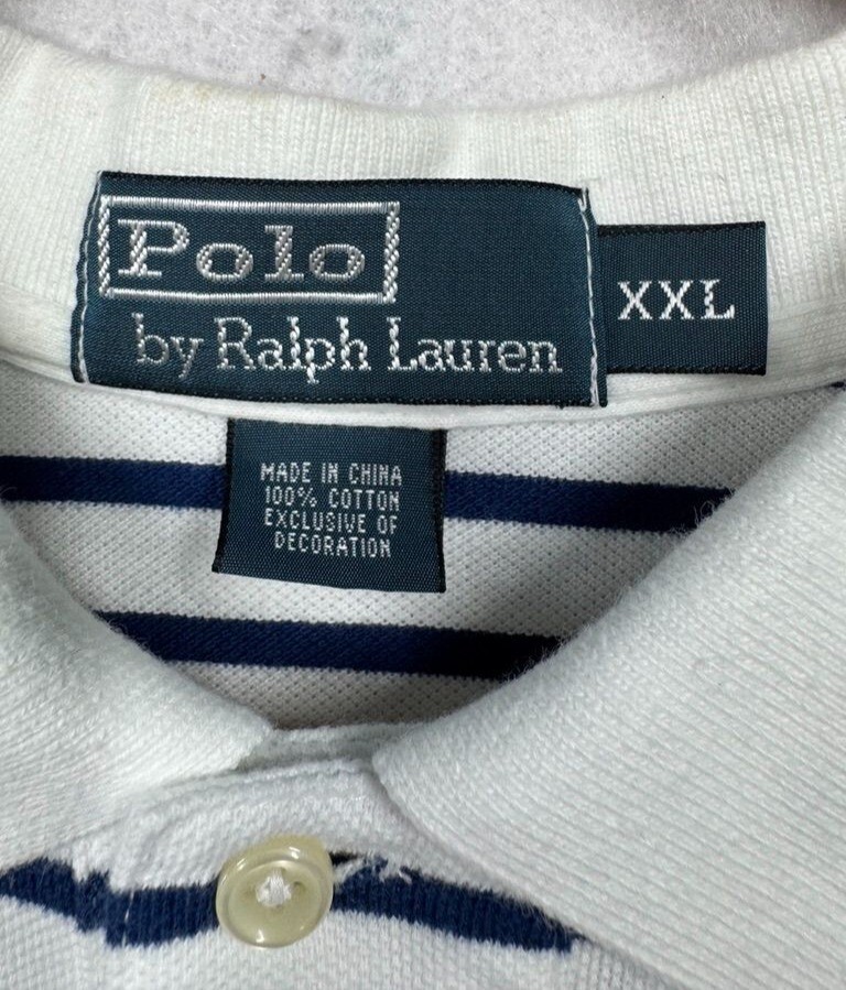 Polo Ralph Lauren Short Sleeved Polo Shirt White Blue Striped Cotton Men's XXL