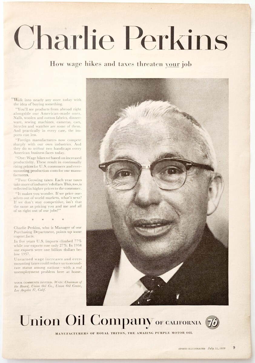 1959 Union Oil Company 76 Advertisement Charlie Perkins Gas & Oil Vintage DWF13