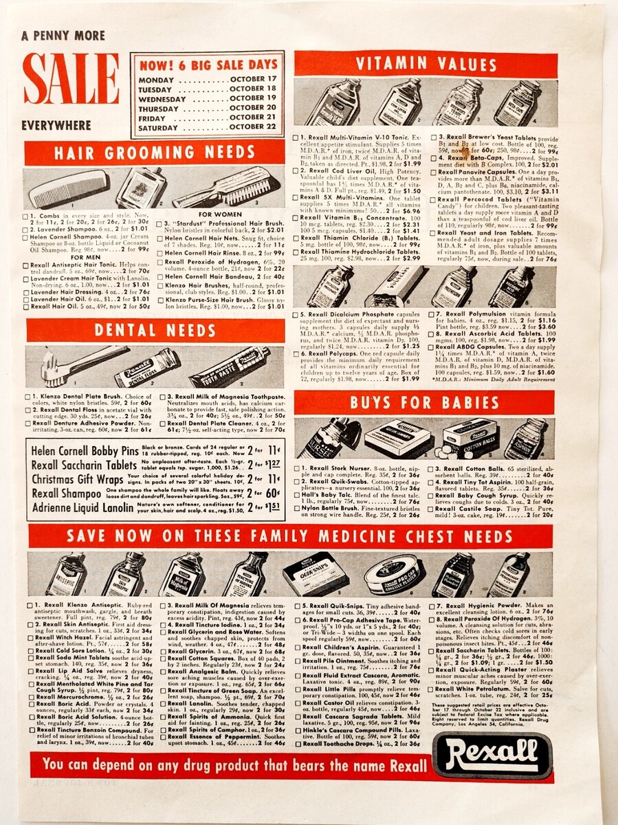 1955 Rexall Drug Pharmacy Store Sale Advertisement Vintage Medicines DWF12