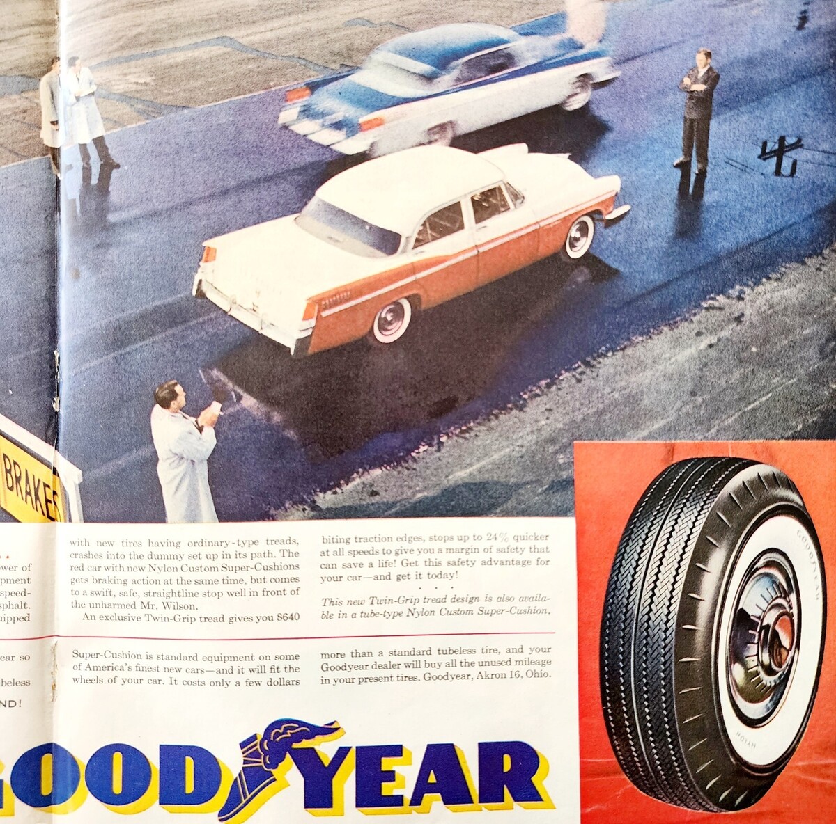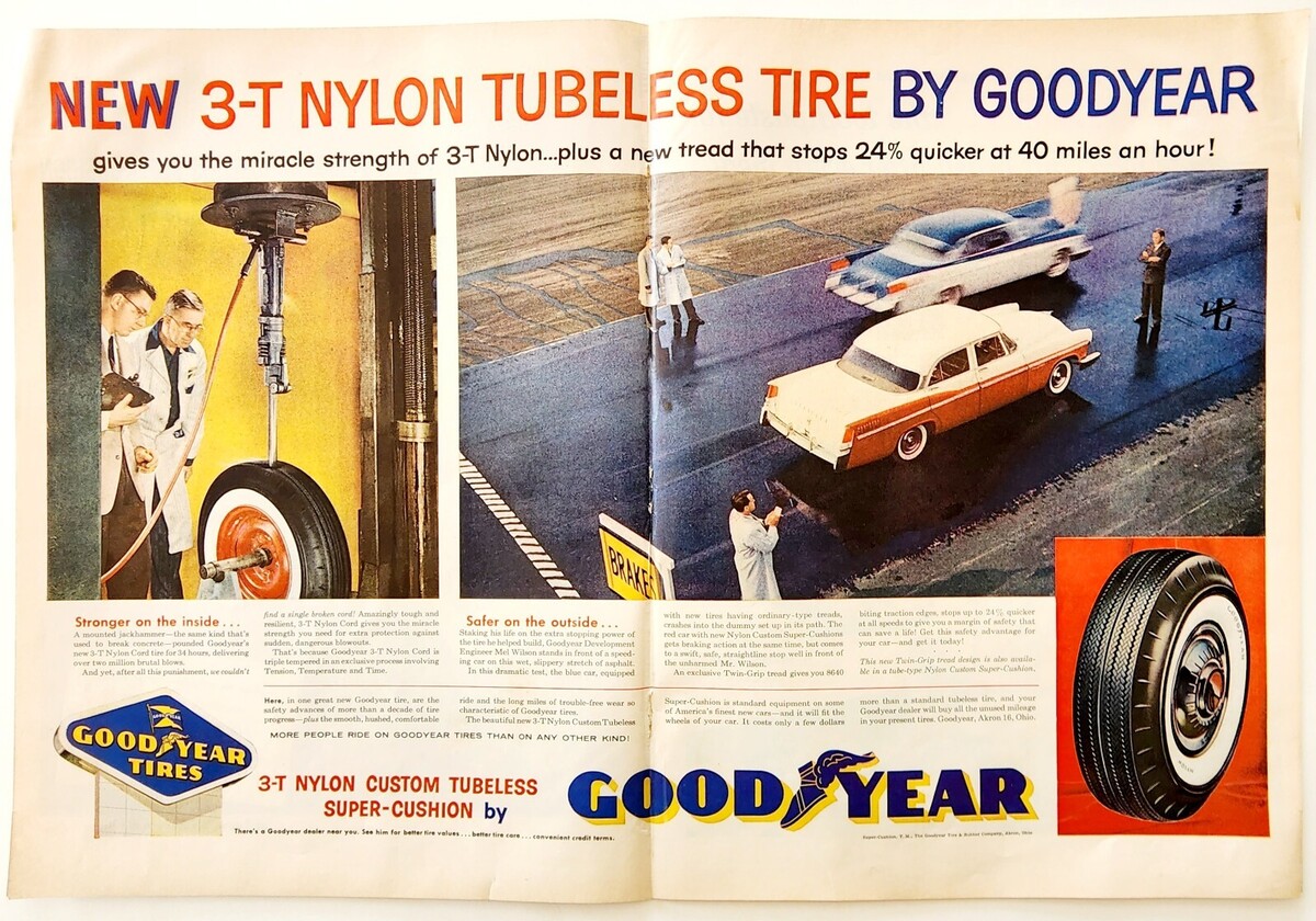 1956 Goodyear 3T Nylon Tubeless Tire Advertisement Automobilia Centerfold DWJJ10