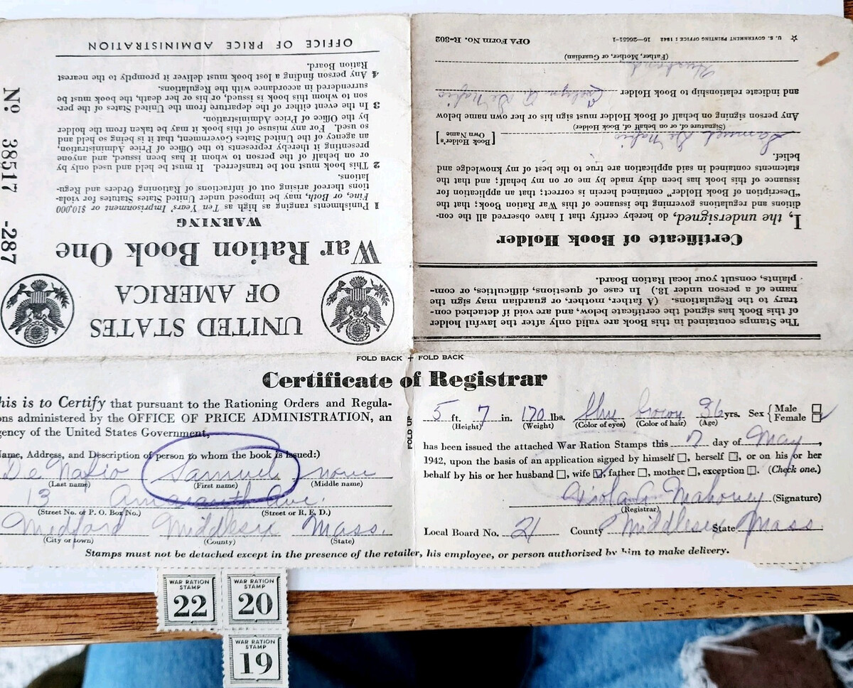 1943 WW2 War Ration Book 1 DeNafio Medford and similar items