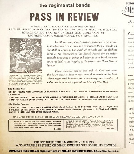 1962 The Regimental Bands Pass In Review Marches Vinyl Record 33 12" VRD14