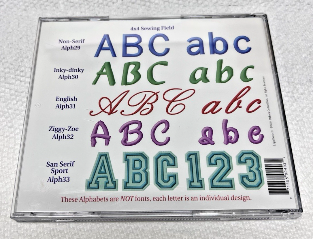 Dakota Collectibles Machine Embroidery Designs Cd Alphabet Collection Opened but never used