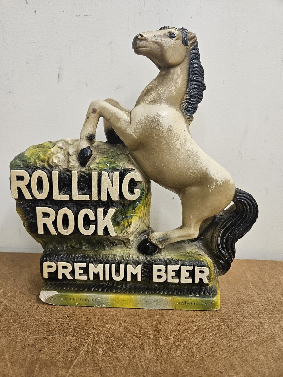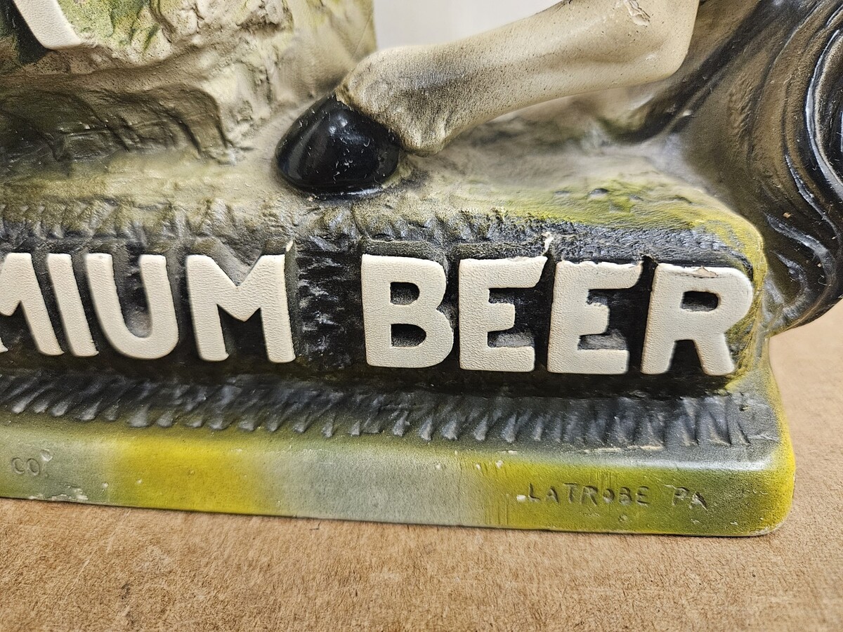 Vintage Rolling Rock Premium Beer Horse Chalkware Statue Ad Display Counter Sign