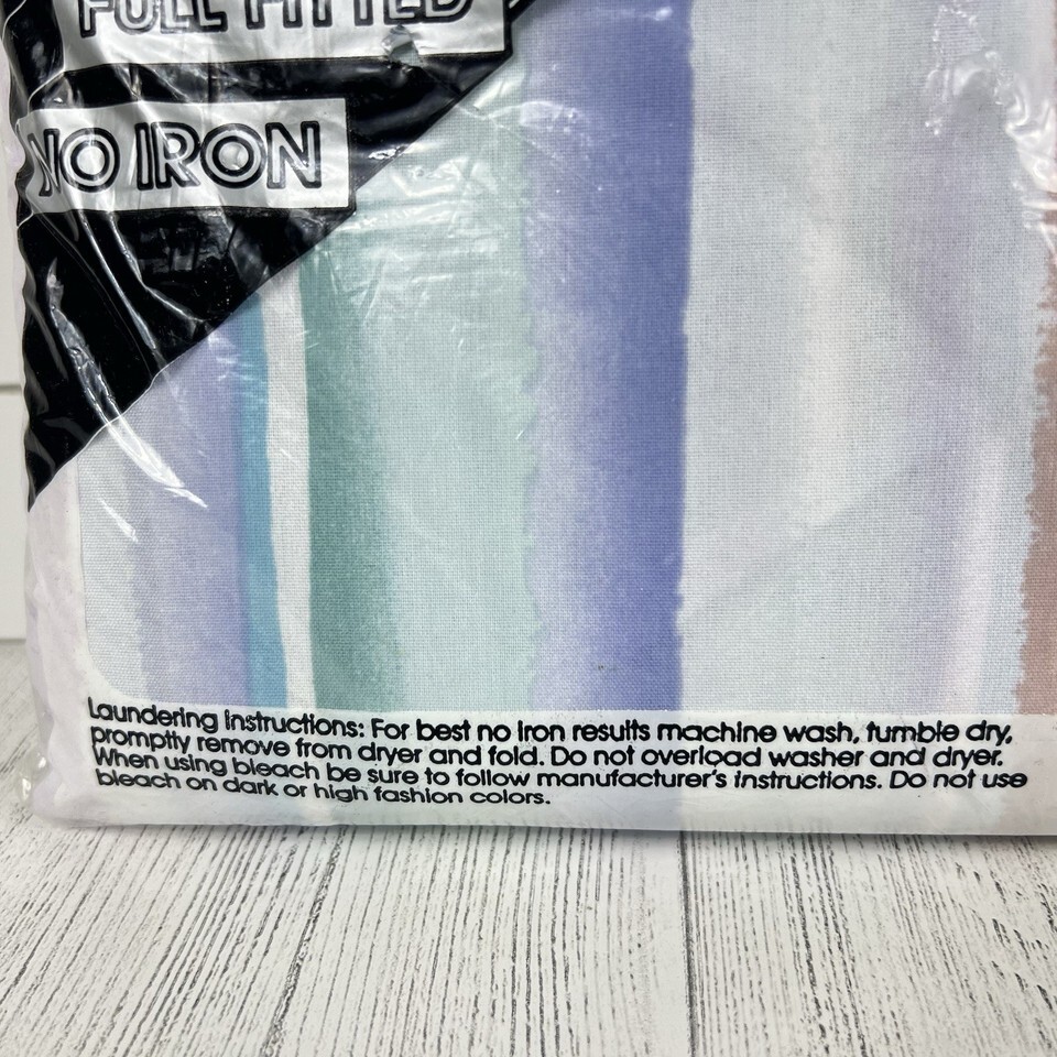 Vintage Springs Performance Twilite Full Fitted Sheet Sea Breeze Stripe 124 TC No Iron NOS