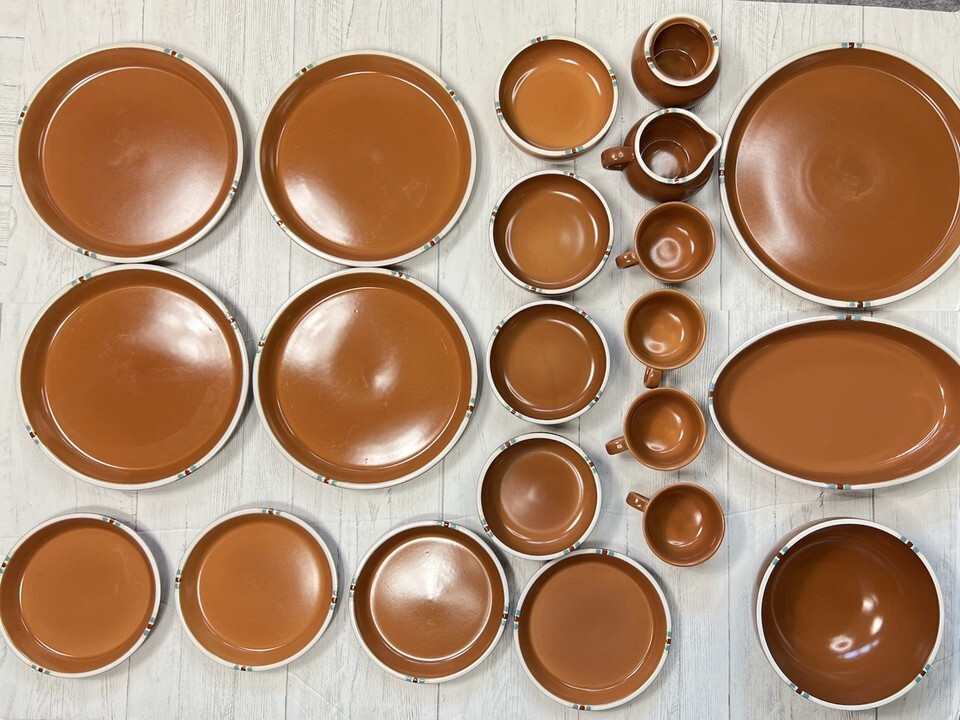 BrandDanskPatternMesaModelDansk Mesa KW JapanMaterialStoneware CeramicColorRust Brown with Teal Maroon TrimTypeComplete Dinnerware SetNumber of Items in Set22FeaturesMicrowave Safe, Dishwasher SafeProduction StyleMid-Century ModernOriginJapanConditionPreowned ? excellent vintage conditionShapeRoundCollectionDansk MesaManufacturer ColorRust / BrownVintageYes