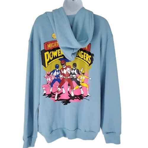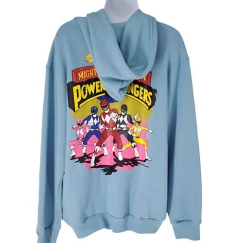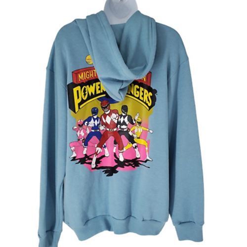 Mighty Morphin Power Rangers Womens Hoodie Sweatshirt Blue Pullover Kangaroo Pocket S New