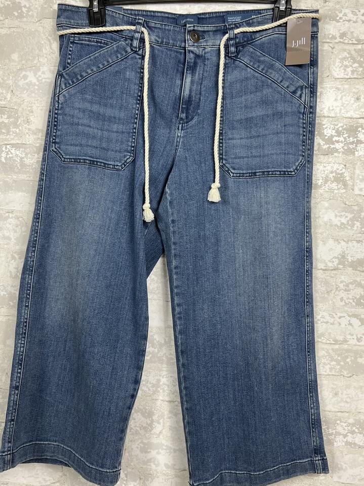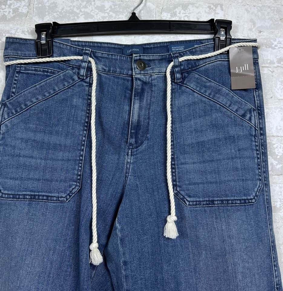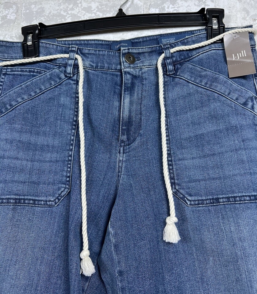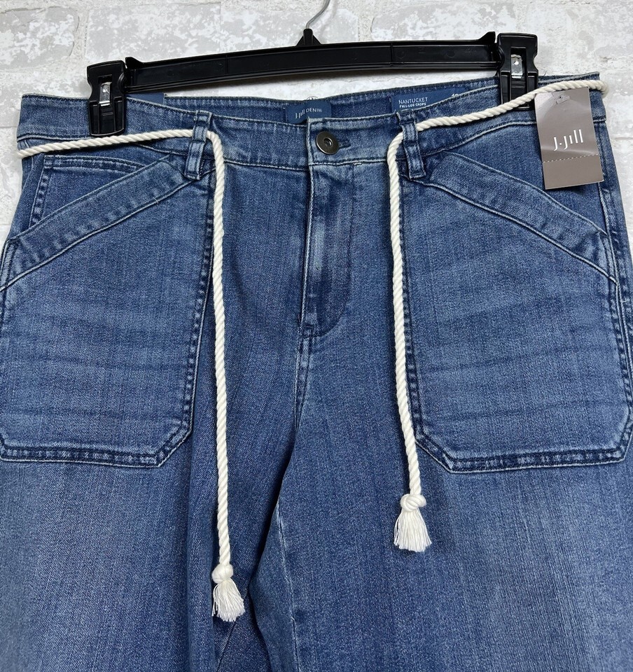 NEW J. Jill Womens Nantucket Full Leg Crop Rope Belt Jeans Medium Wash Size 12P