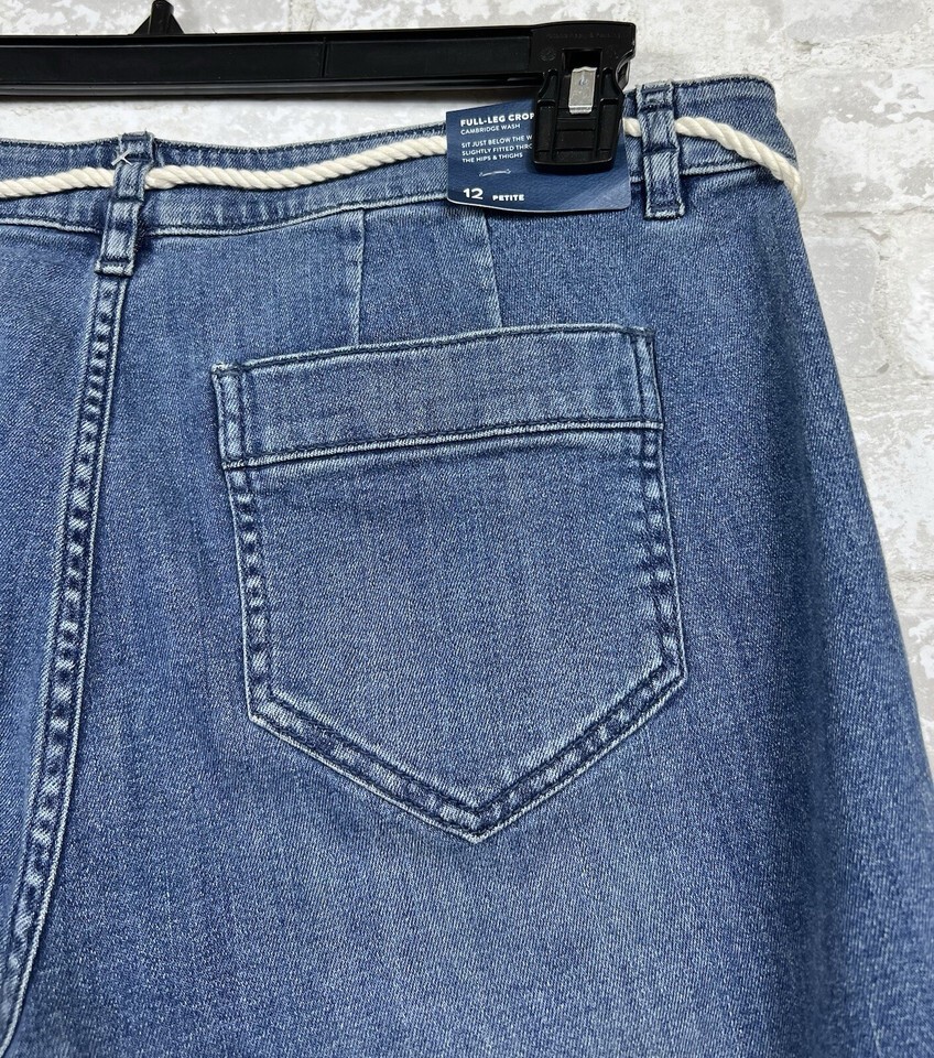 J. Jill Womens Nantucket Full Leg Crop Rope Belt Jeans Medium Wash Size 12P New