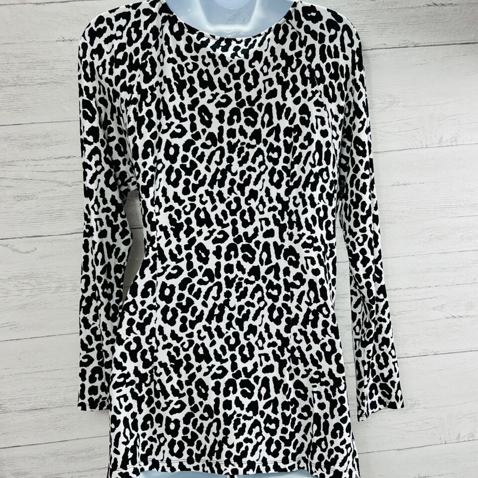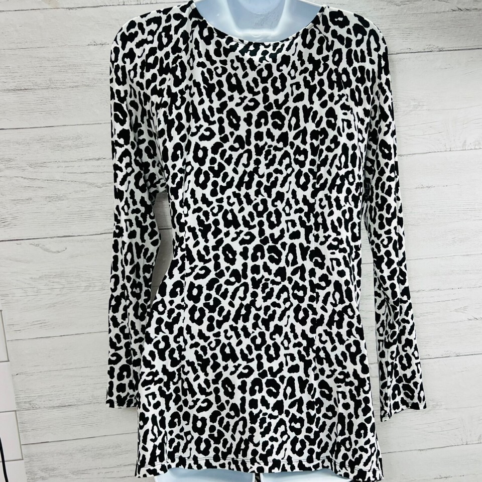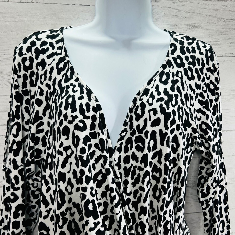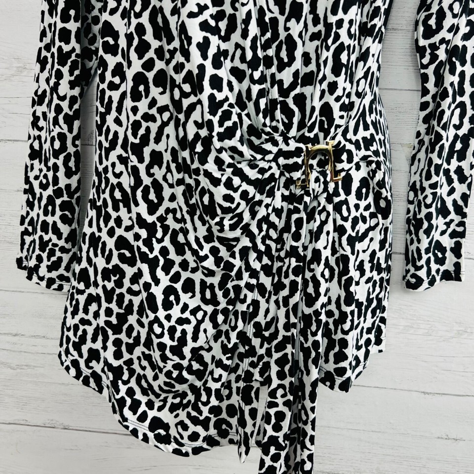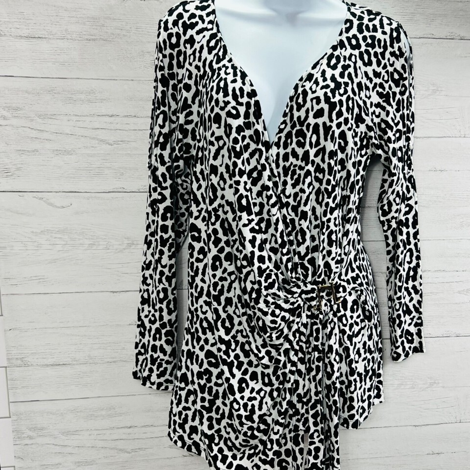 Cache Womens Size Large Animal Print Wrap Front Cold Shoulder Long Sleeve Top