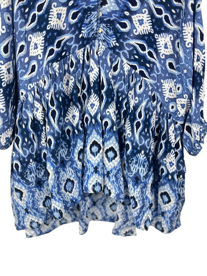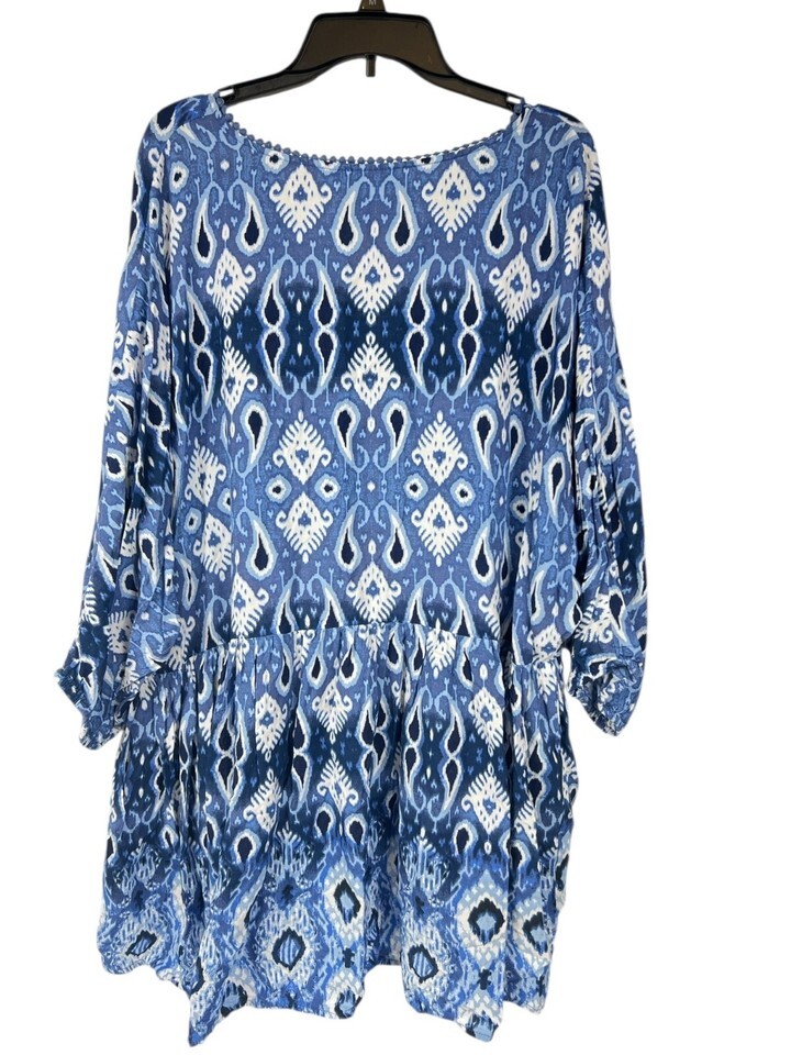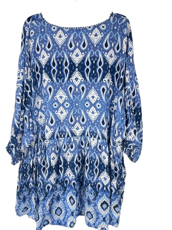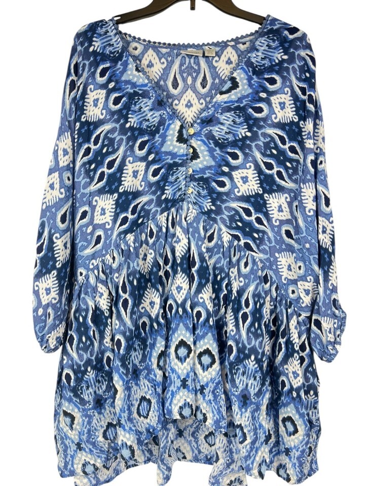 Avenue Womens Blue & White Boho Tunic Top With Button Details Size 22/24