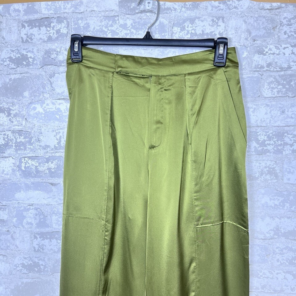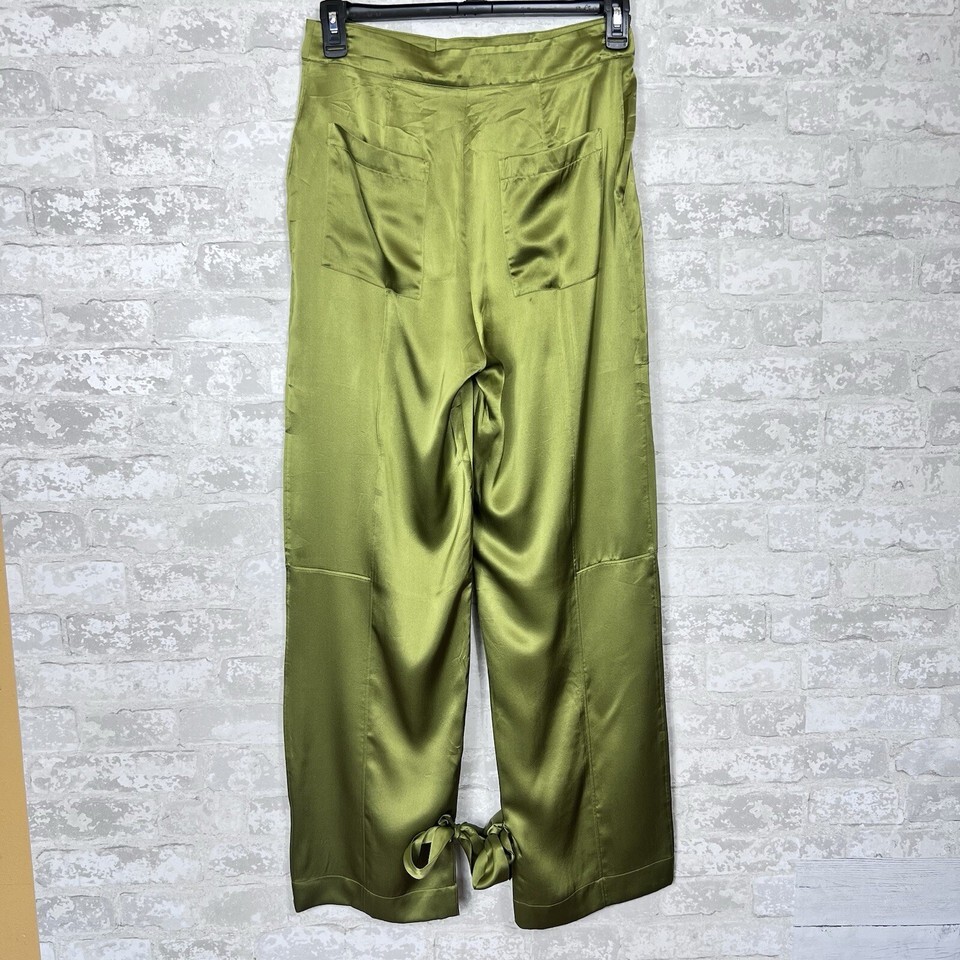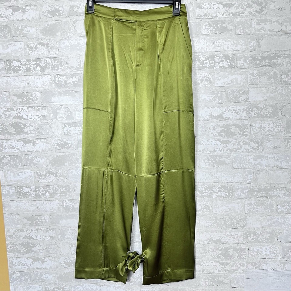 Nicholas Erato Silk Tapered Ties At Cuff High Rise Olive Pants Womens 8 New