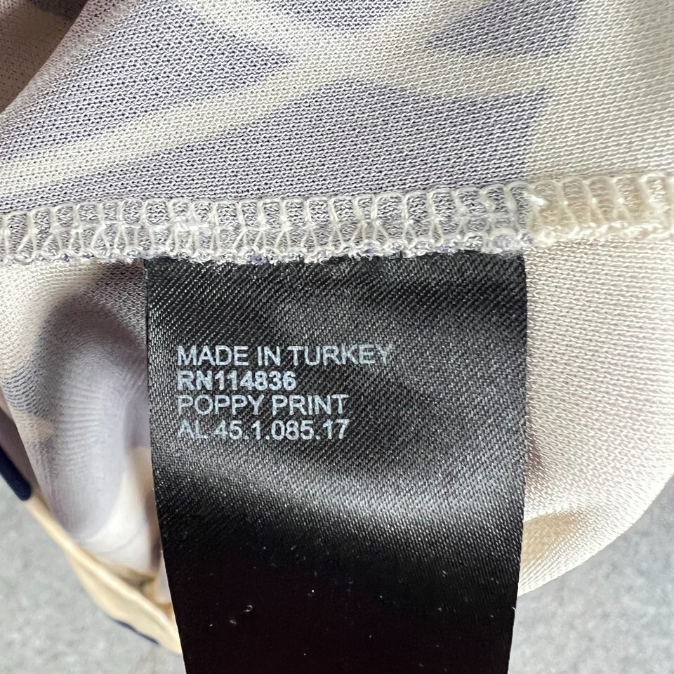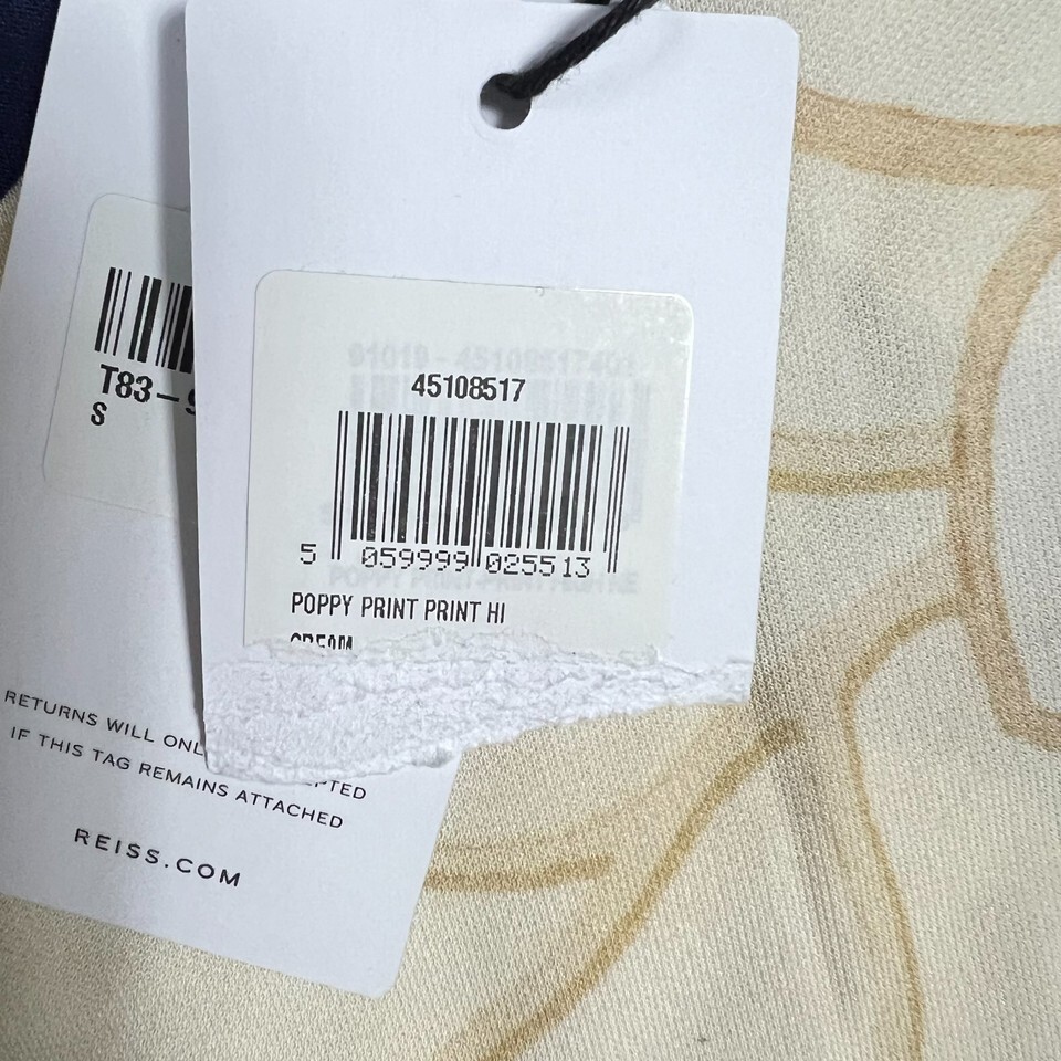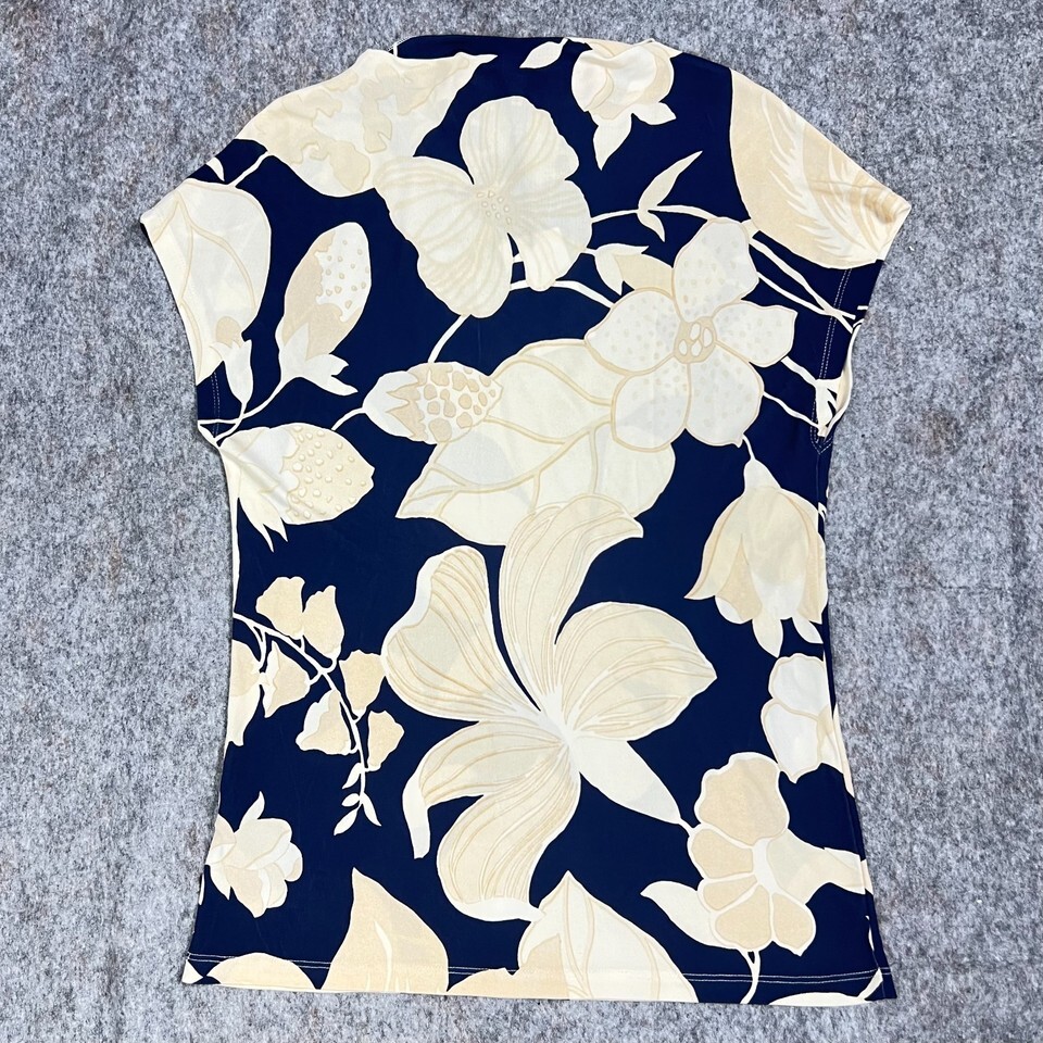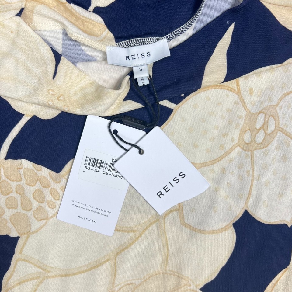 Reiss Poppy Print Floral Top Size Small Navy Cream Short Sleeve Stretch Viscose