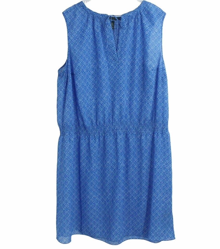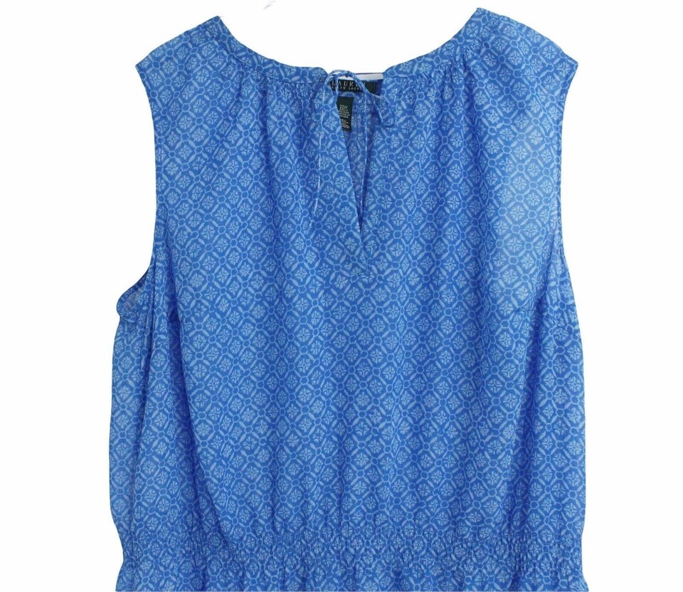 Lauren Ralph Lauren Plus Size Blue Swim Cover-Up Dress 22W Sleeveless Geometric Print