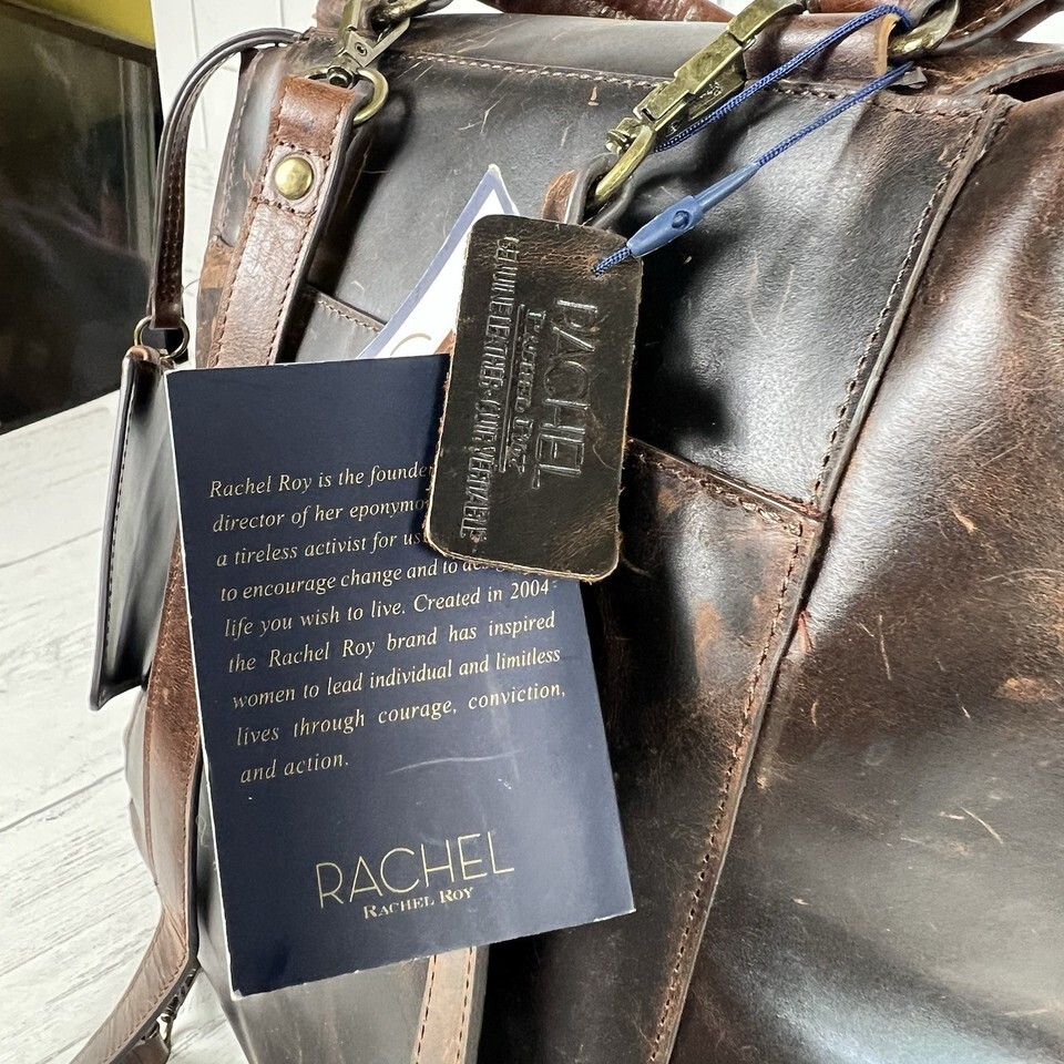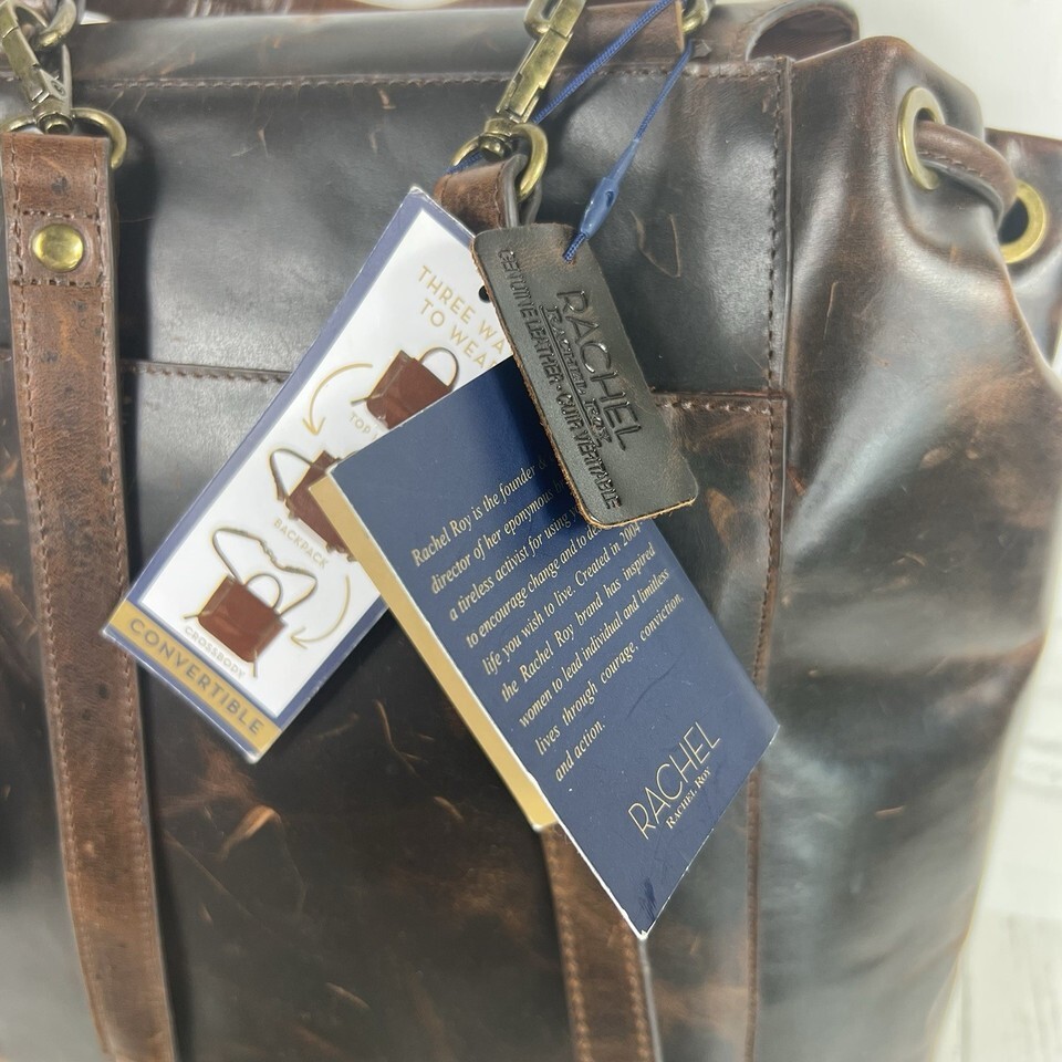 Rachel Roy Genuine Leather Convertible Backpack Tote Crossbody Bag Brown