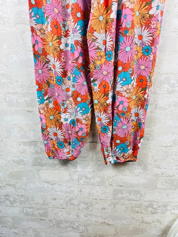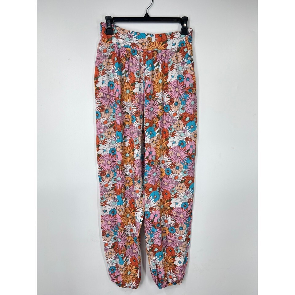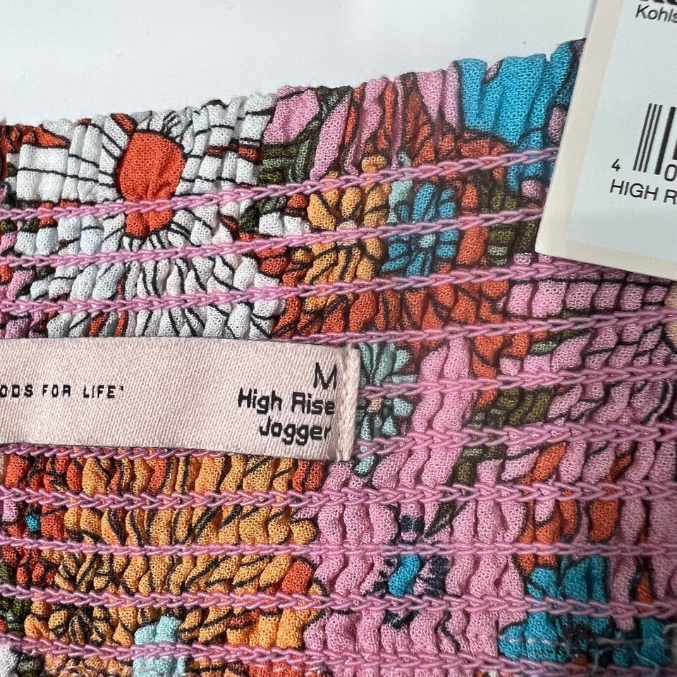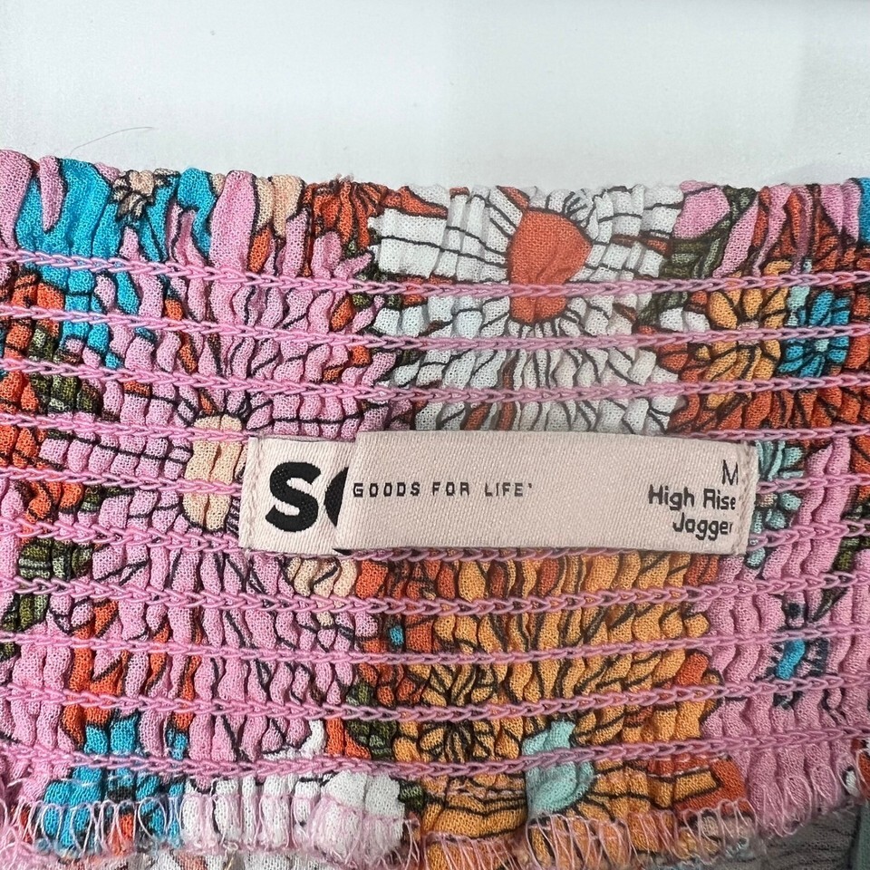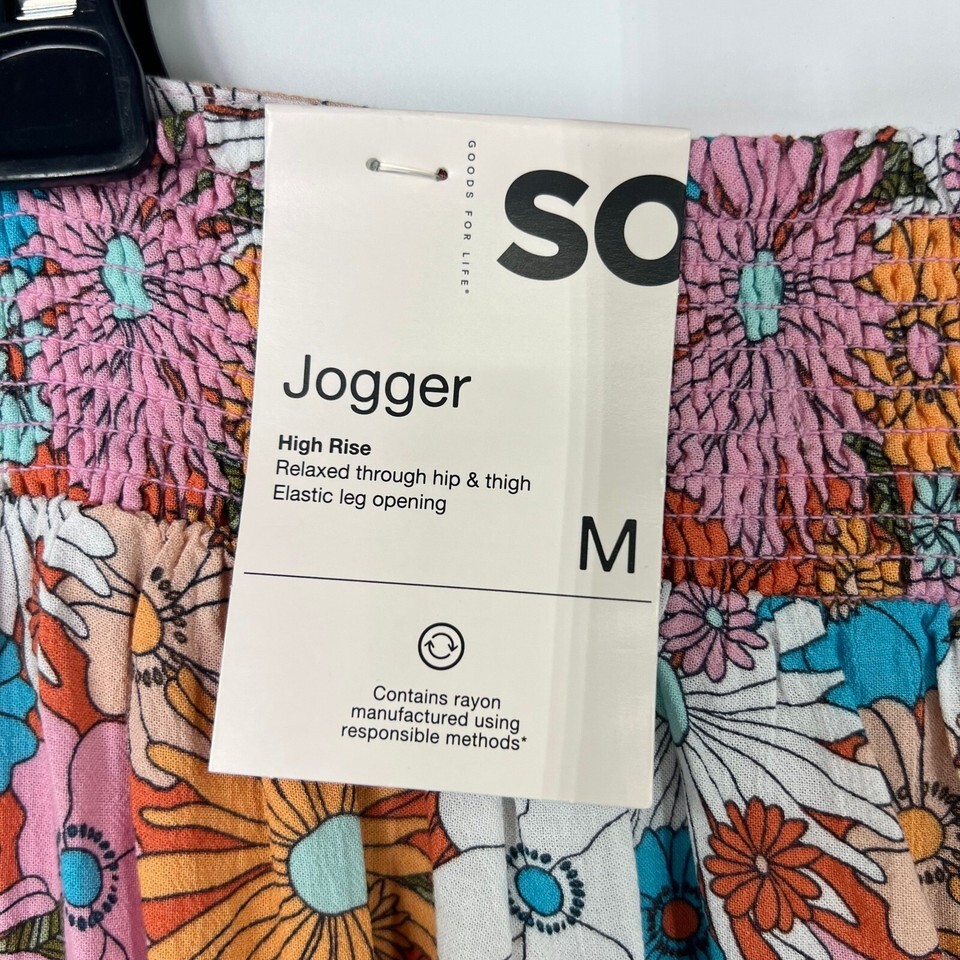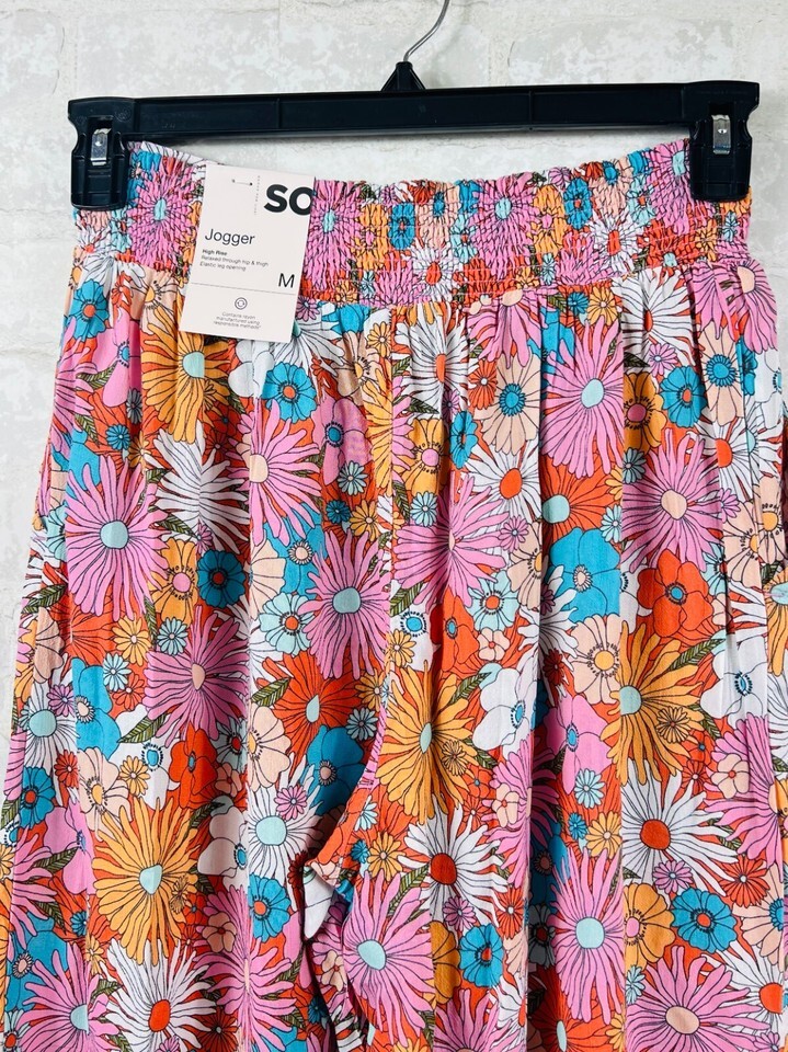 SO High Rise Smocked Joggers Floral Print Relaxed Fit Elastic Waist Pockets Sz M