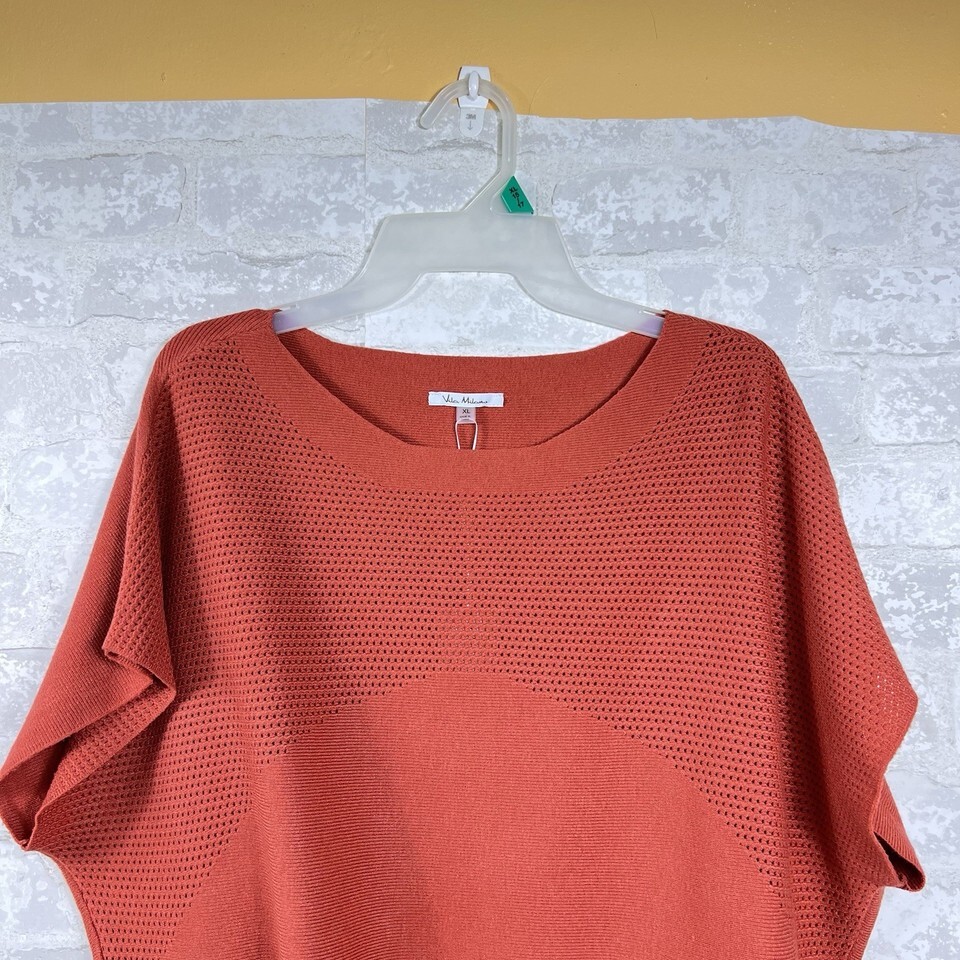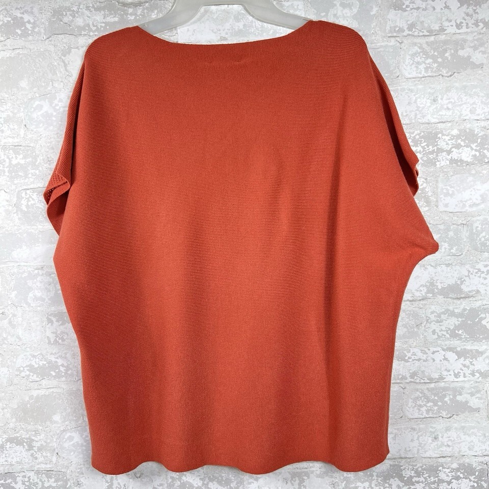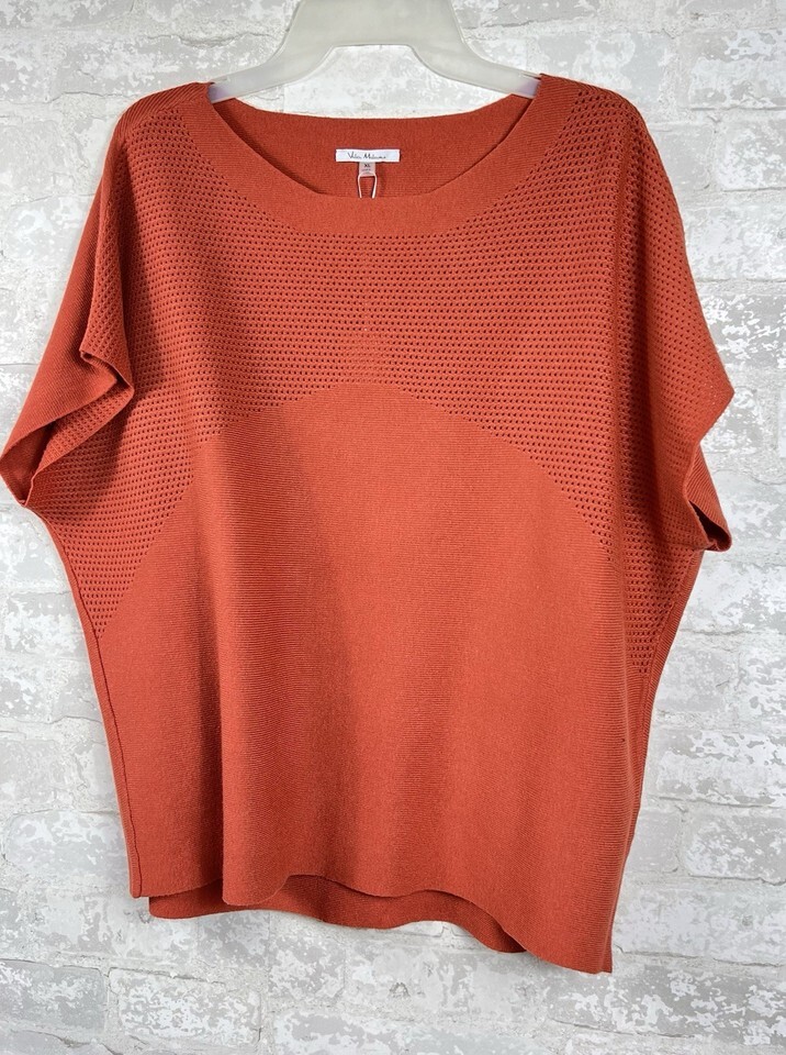 Keywords: Vita Milano, Knit Top, Short Sleeve, Pullover Sweater, Boxy Fit, Orange Top, XL, Womens Top, Casual Top, Sweater, Knitwear, Relaxed Fit, Contemporary, Fashion Top