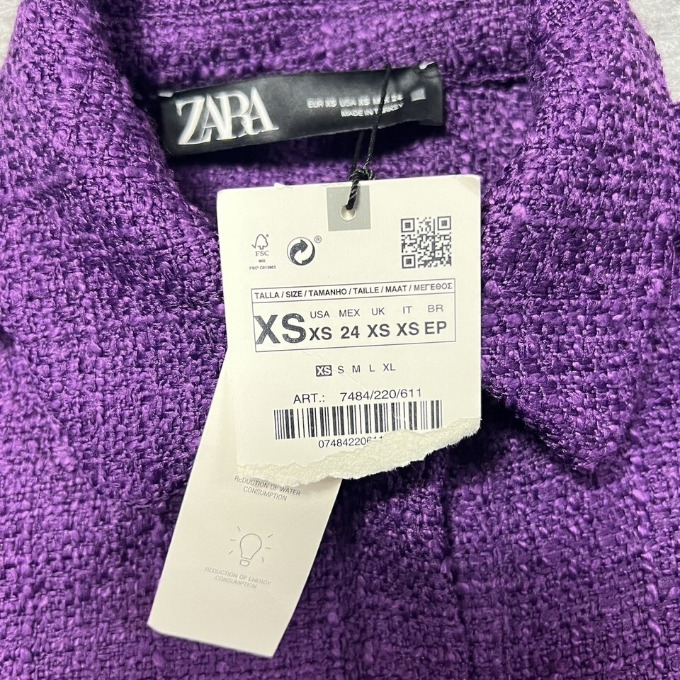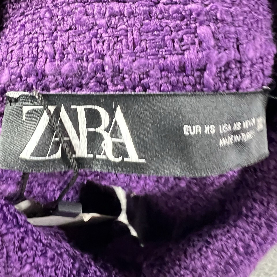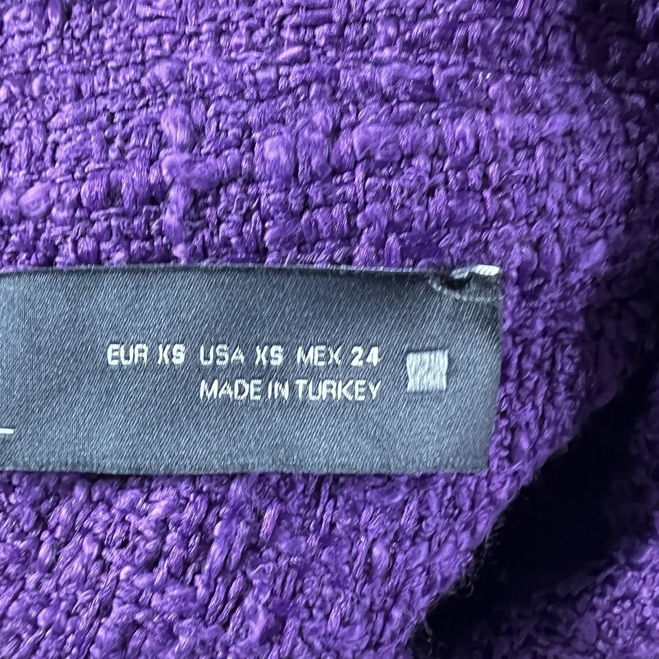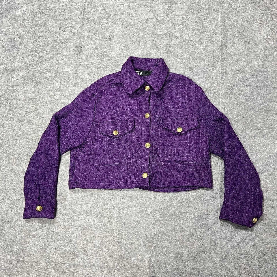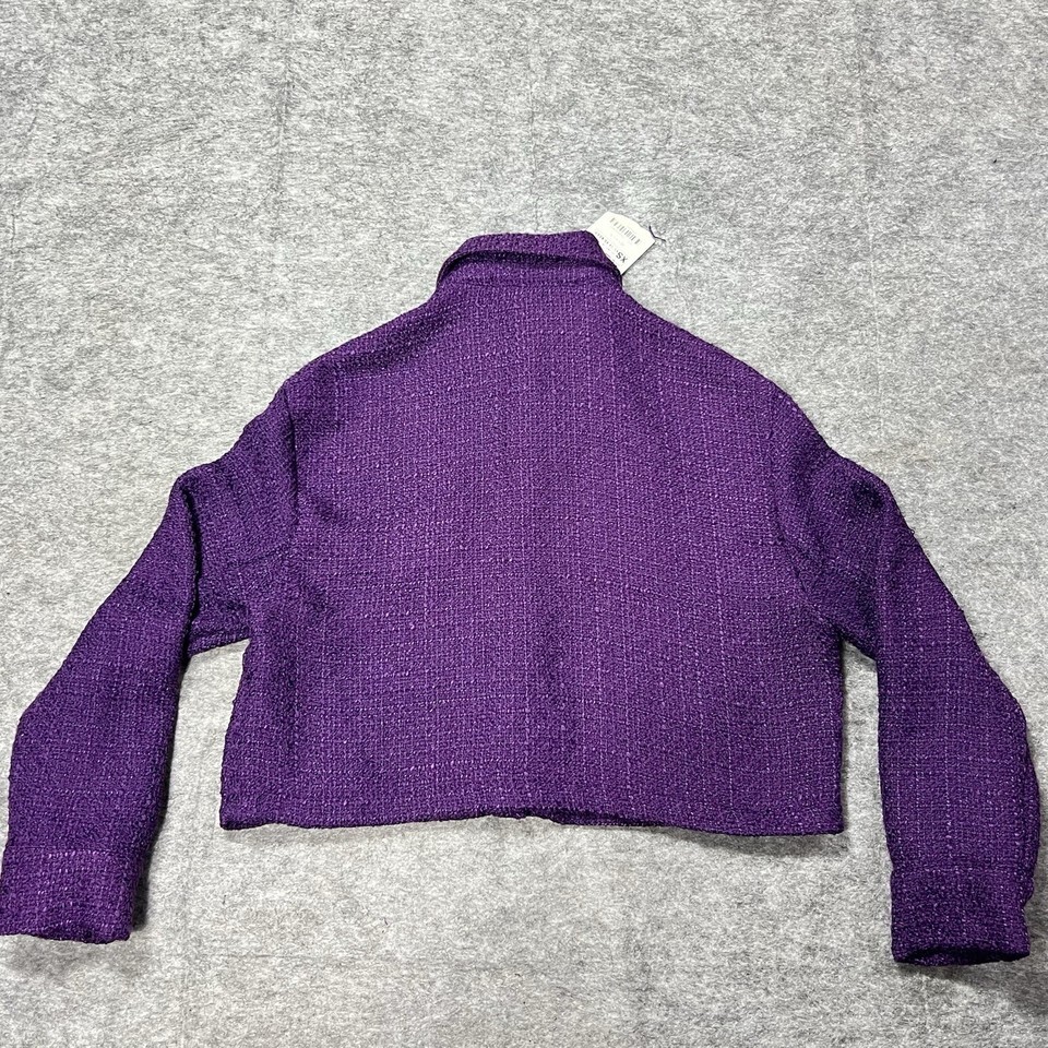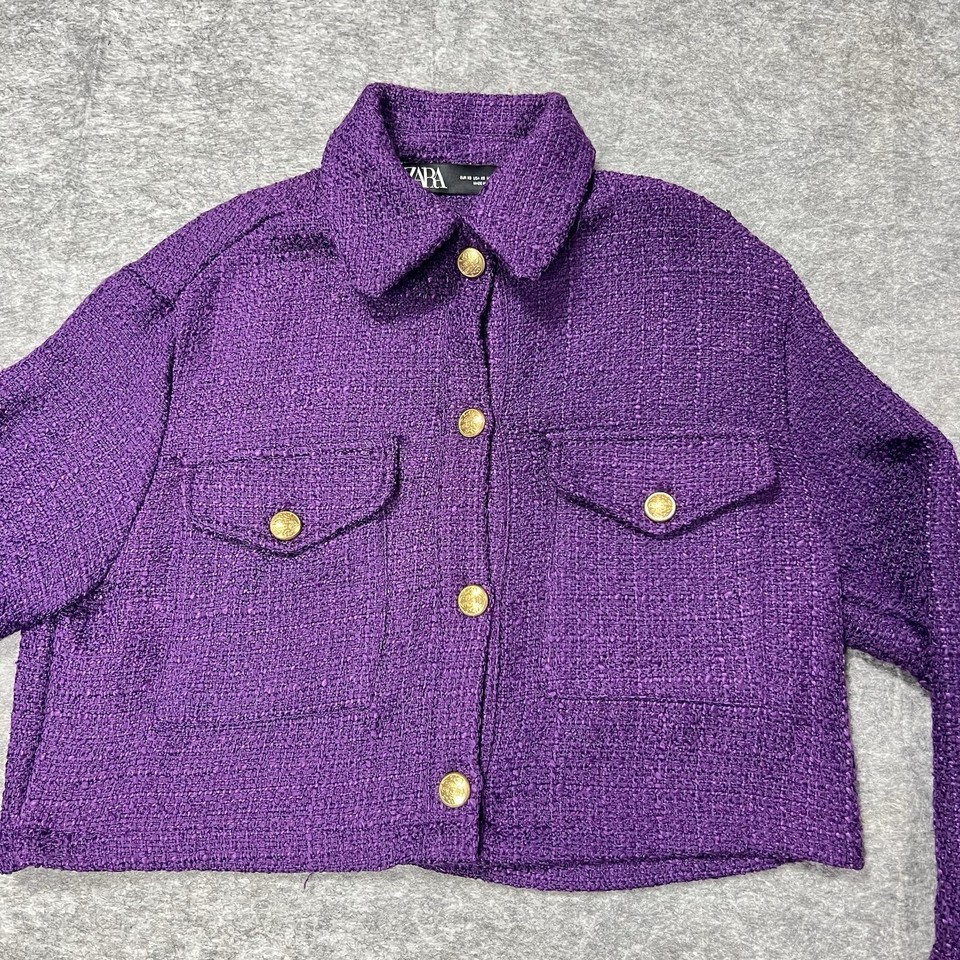 ZARA Women?s Purple Cropped Jacket XS Gold Button Front Tweed Shacket Blazer Top