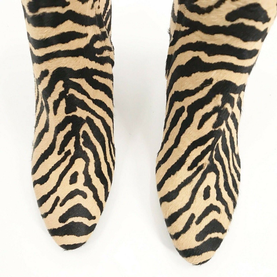 Calf hair upper, pointed toe, zebra print, side zip closure