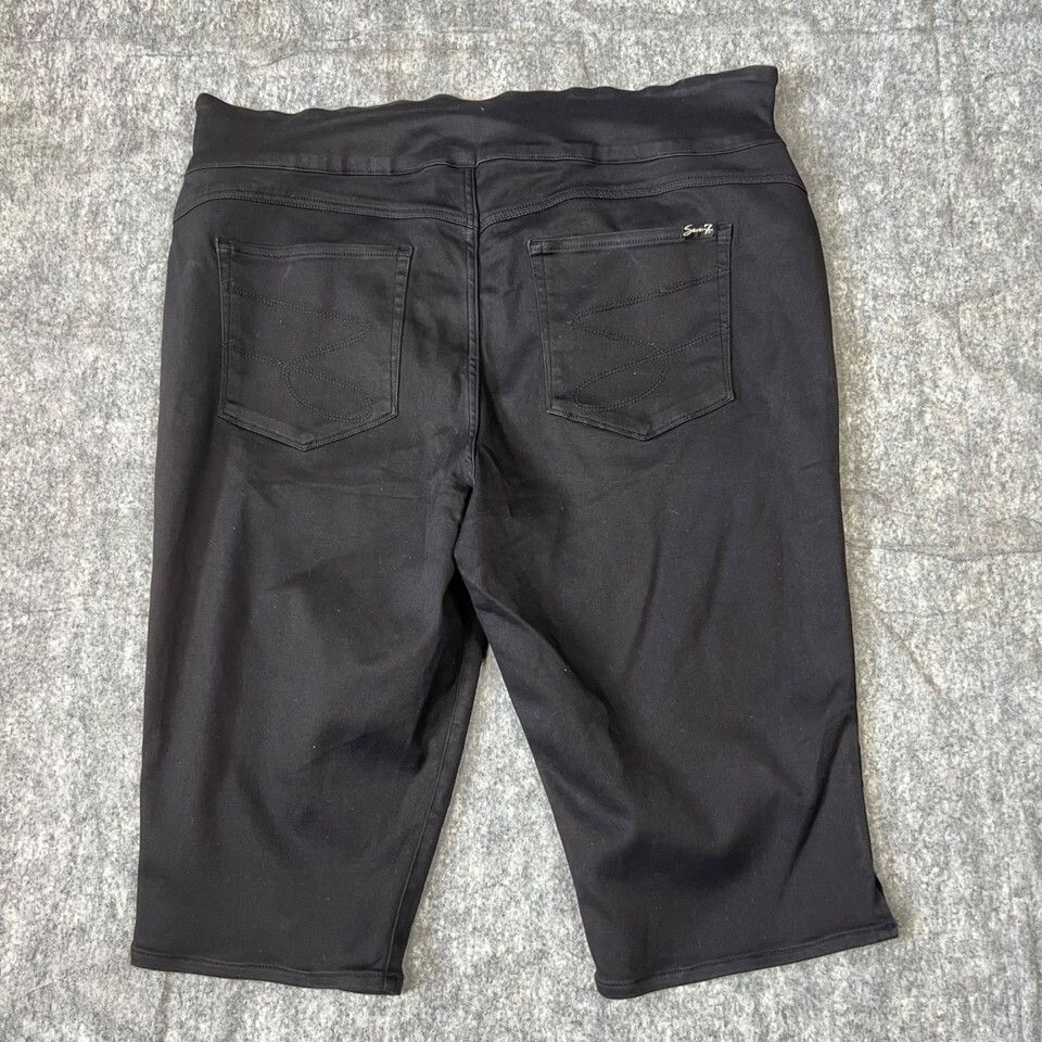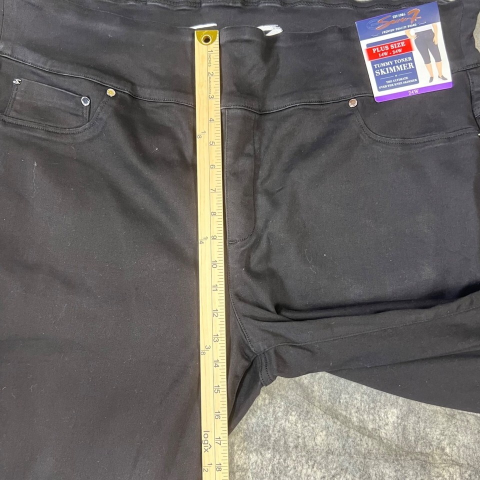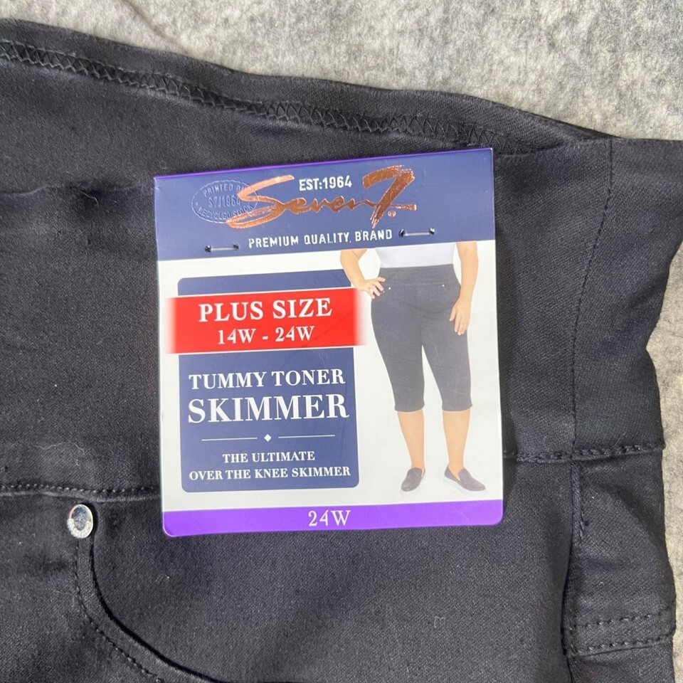 Seven7 Plus Size 24W Tummy Toner Skimmer Capri Jeans Black Pull-On Stretch Denim
