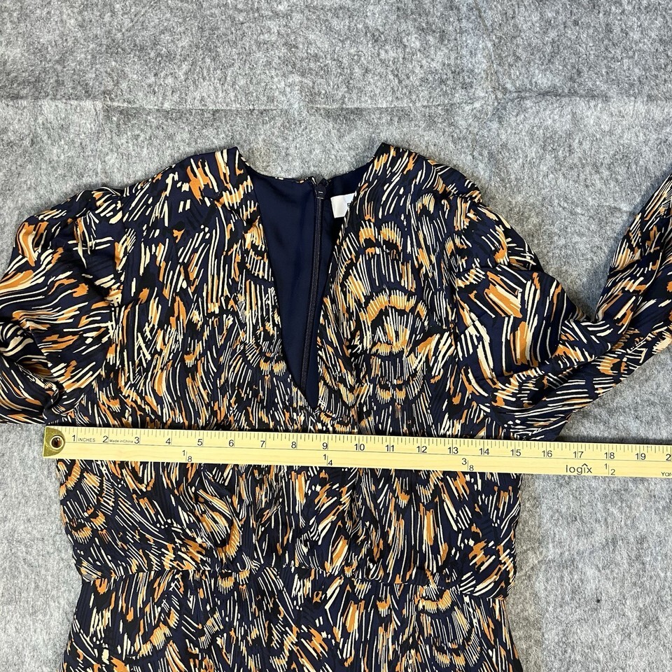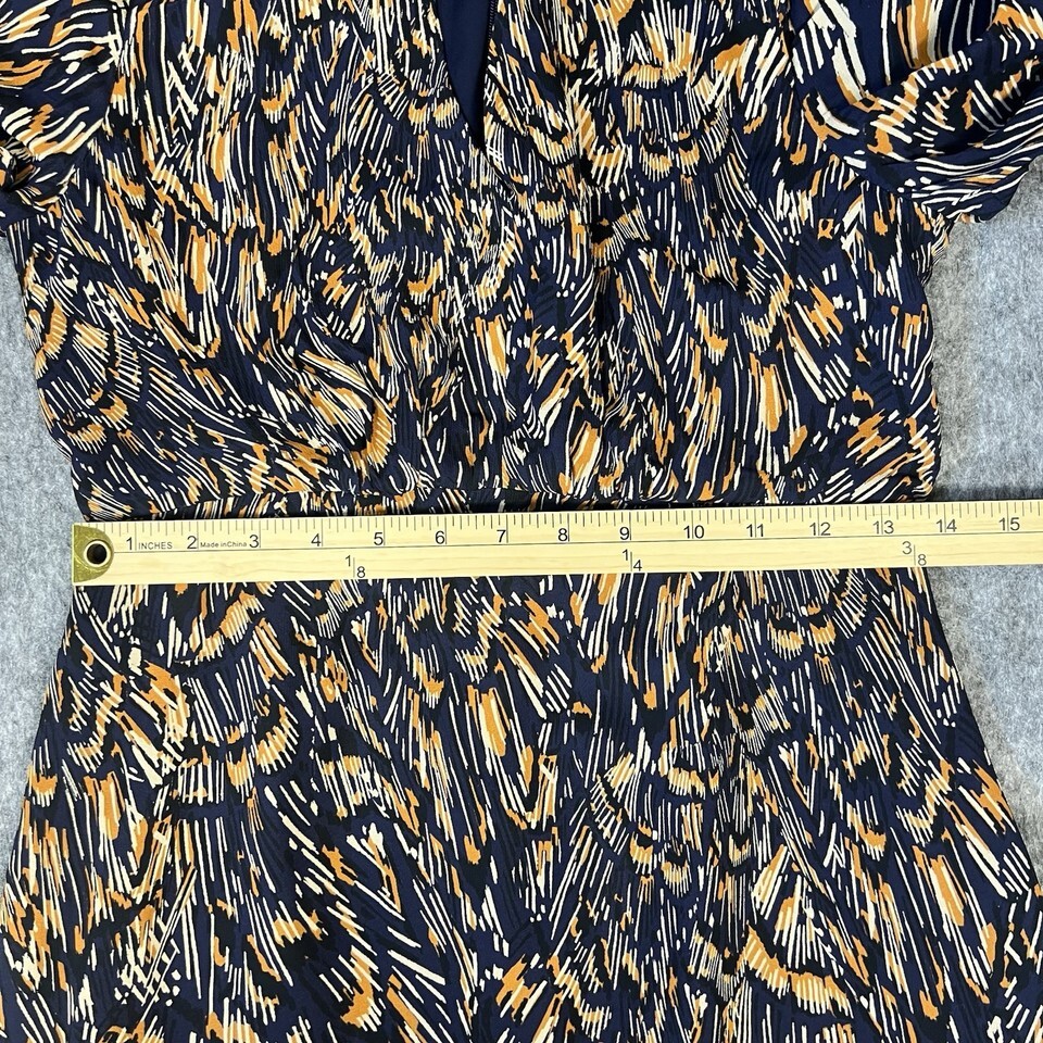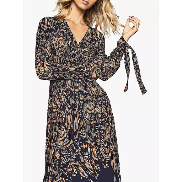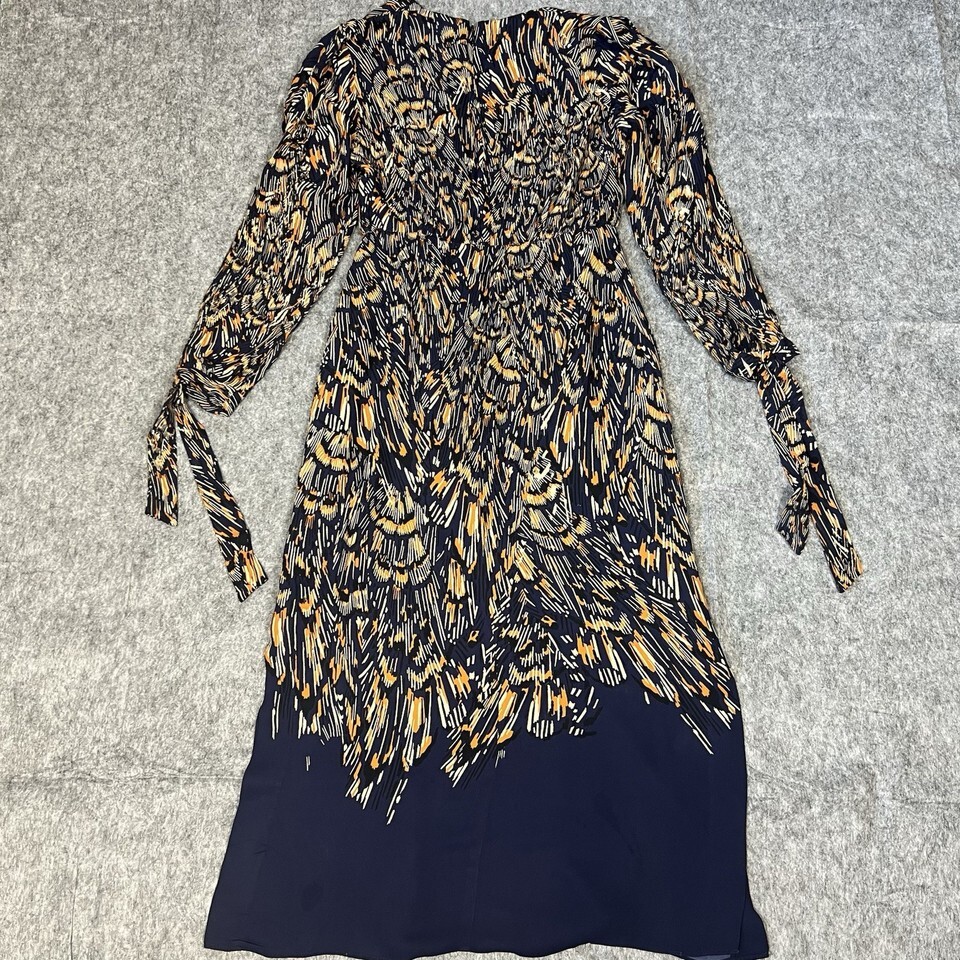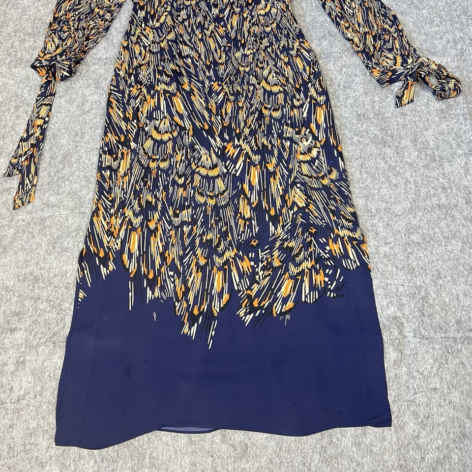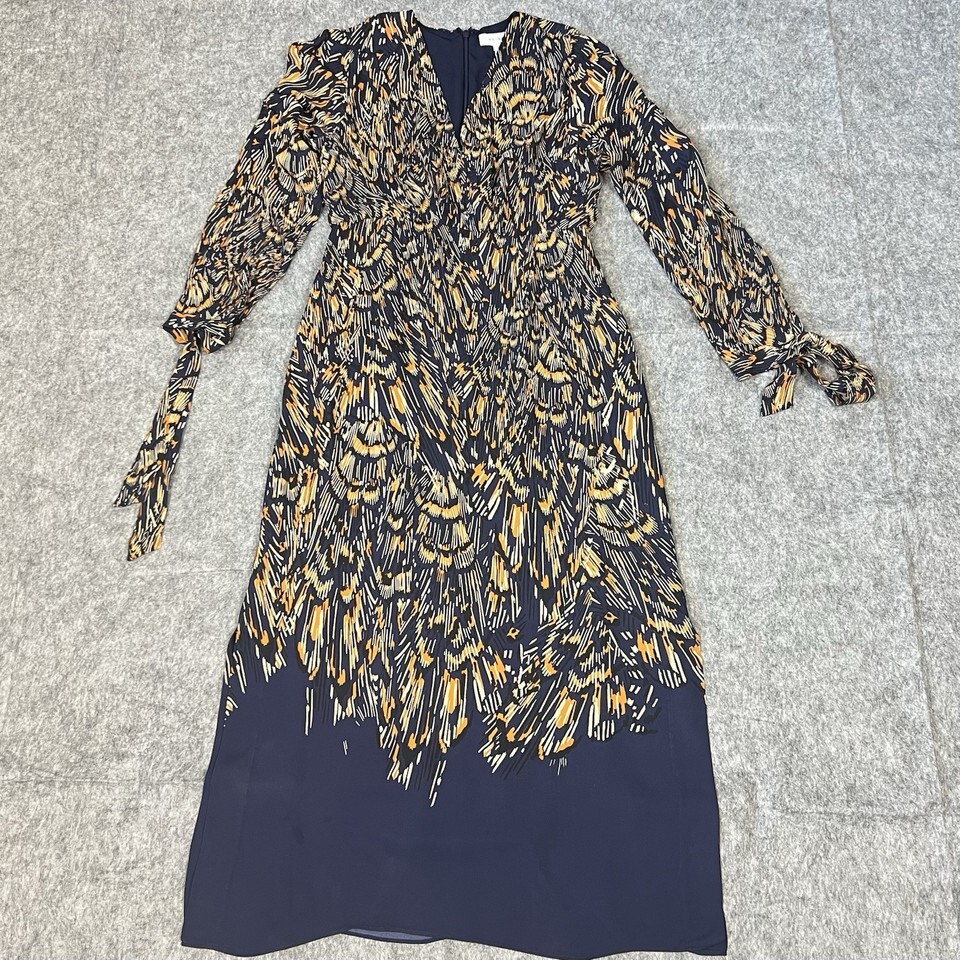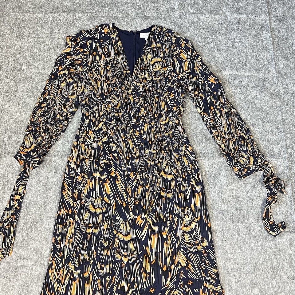 Reiss Erin Midi Dress Women?s UK 8 US 4 Navy Orange Abstract Print Long Sleeve