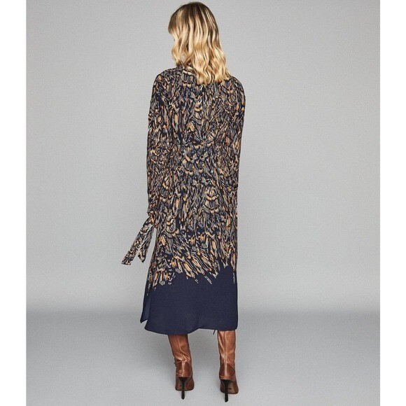 Reiss Erin Midi Dress Women’s UK 8 US 4 Navy Orange Abstract Print Long Sleeve