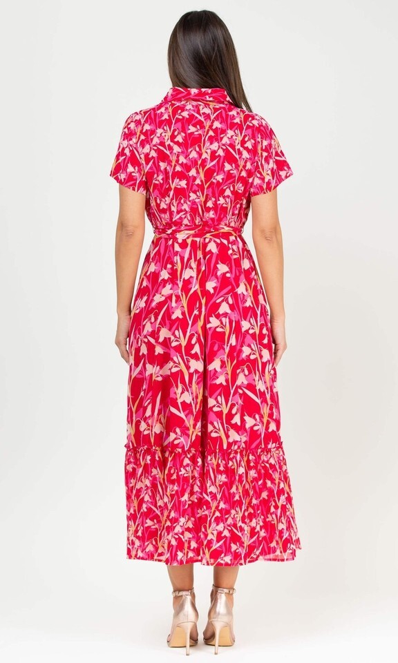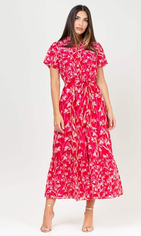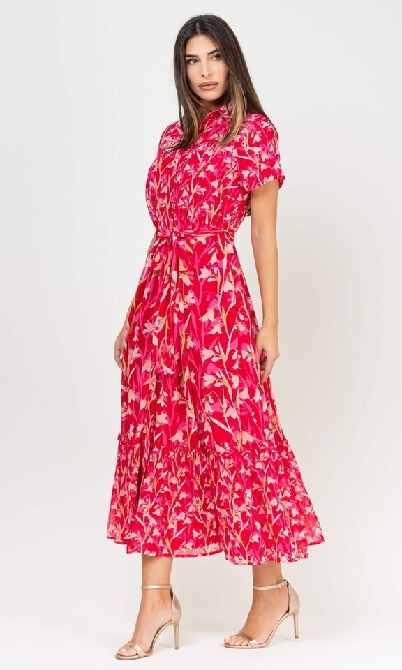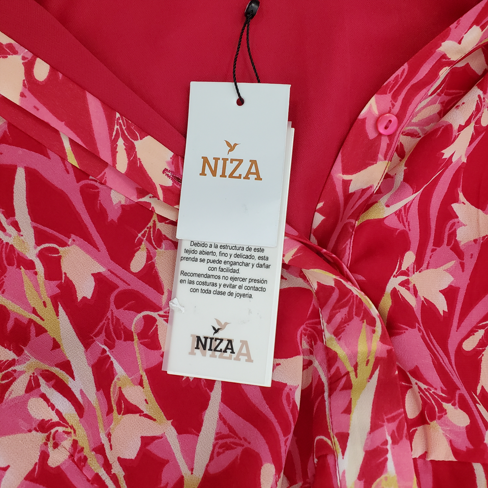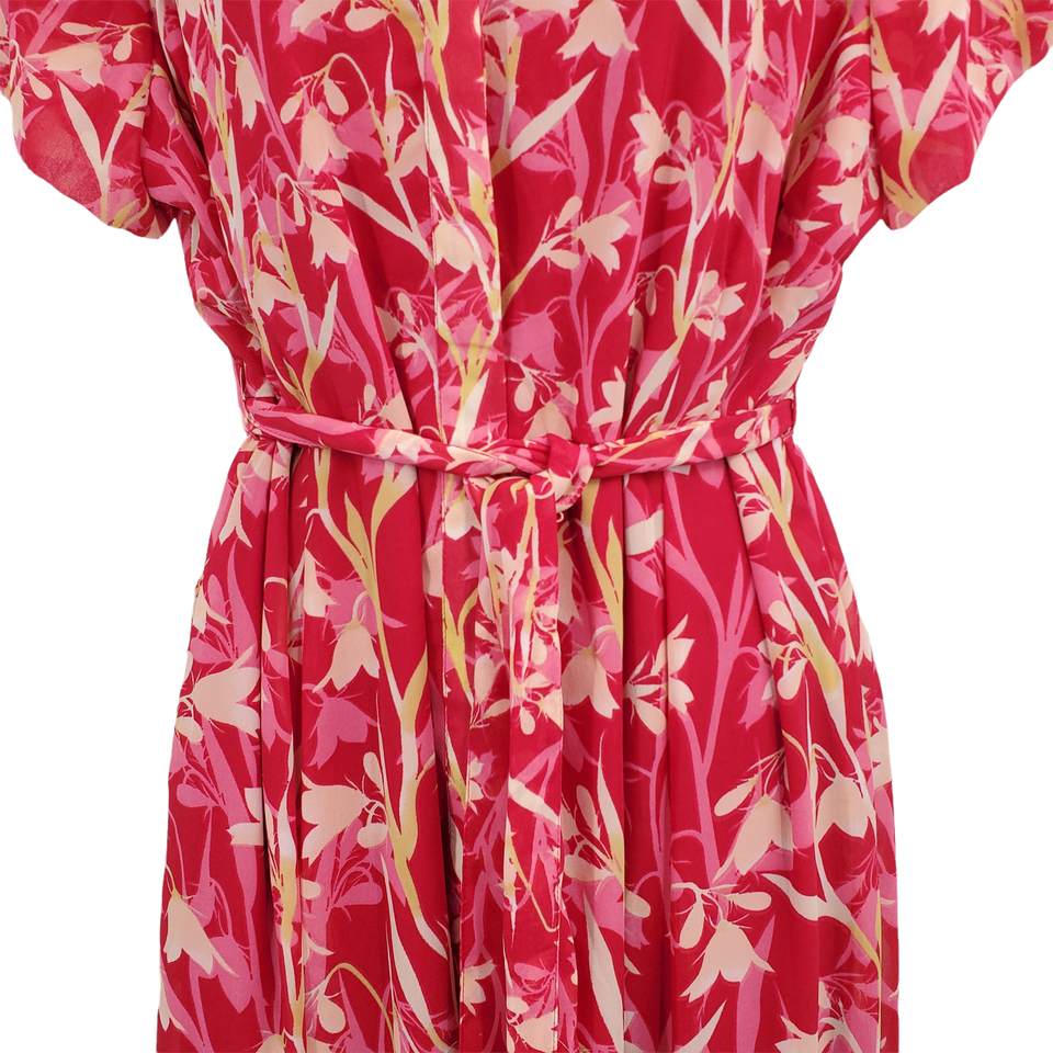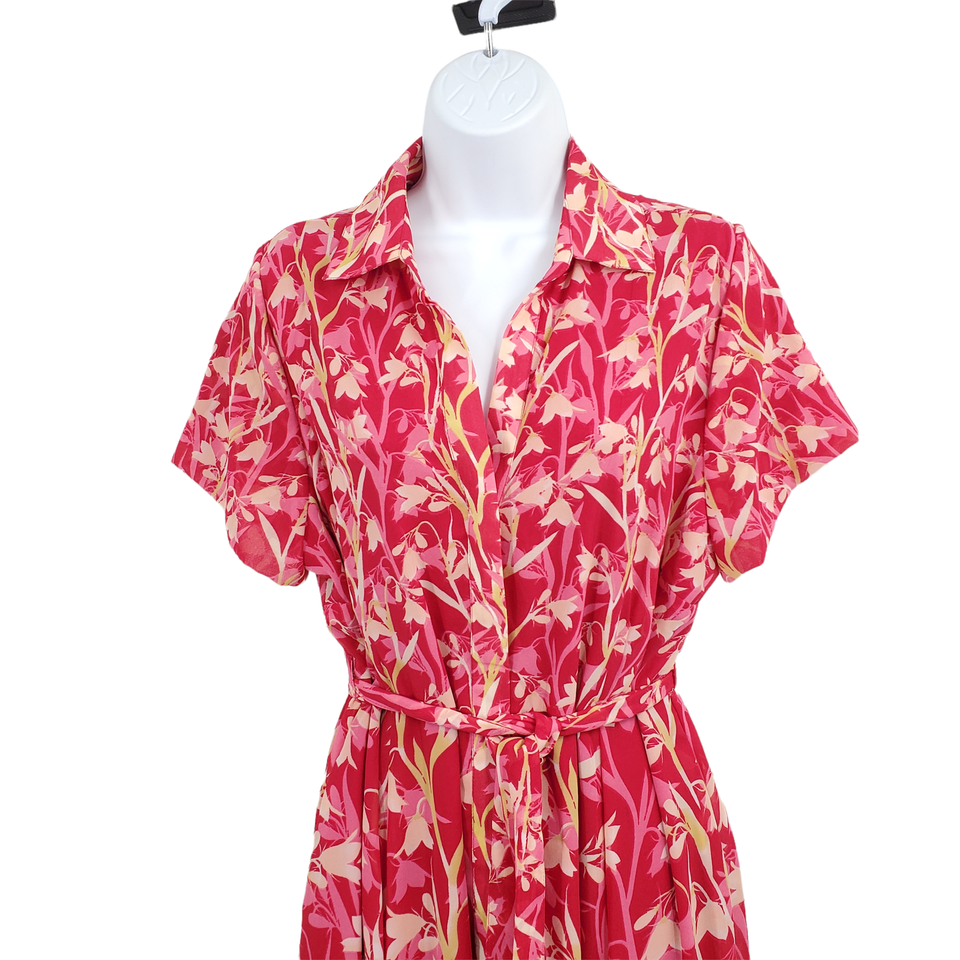 Niza Womens Sz 46 US-2XL Floral Midi Button Front Belted Fuchsia Dress New