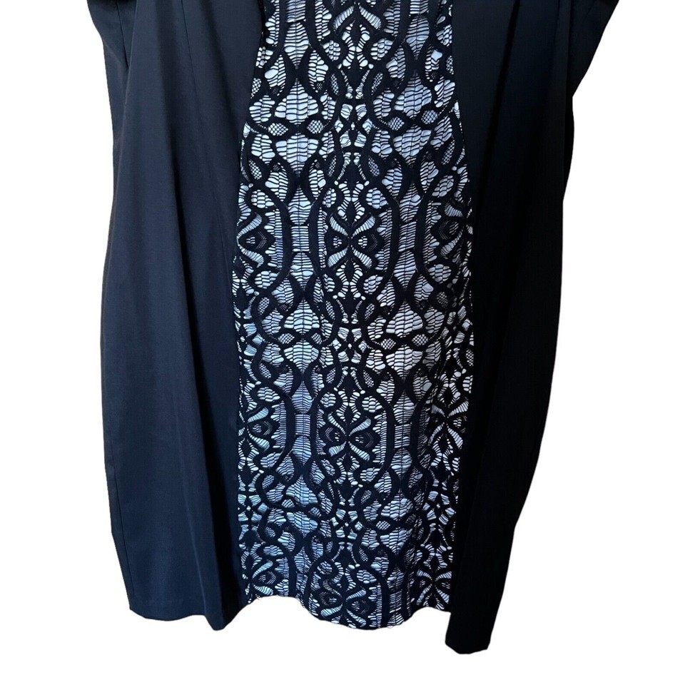 Roz Ali Women's Plus Size 24 Short Sleeve Front Lace Centered Black Zipped Black Dress