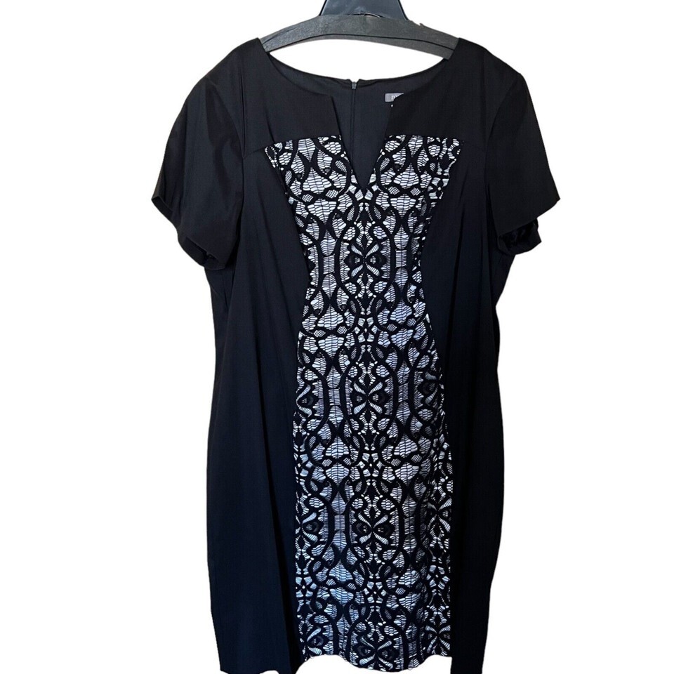 Roz & Ali Womens Plus Sz 24 Short Sleeve Front Lace Centered Black Zipped Dress