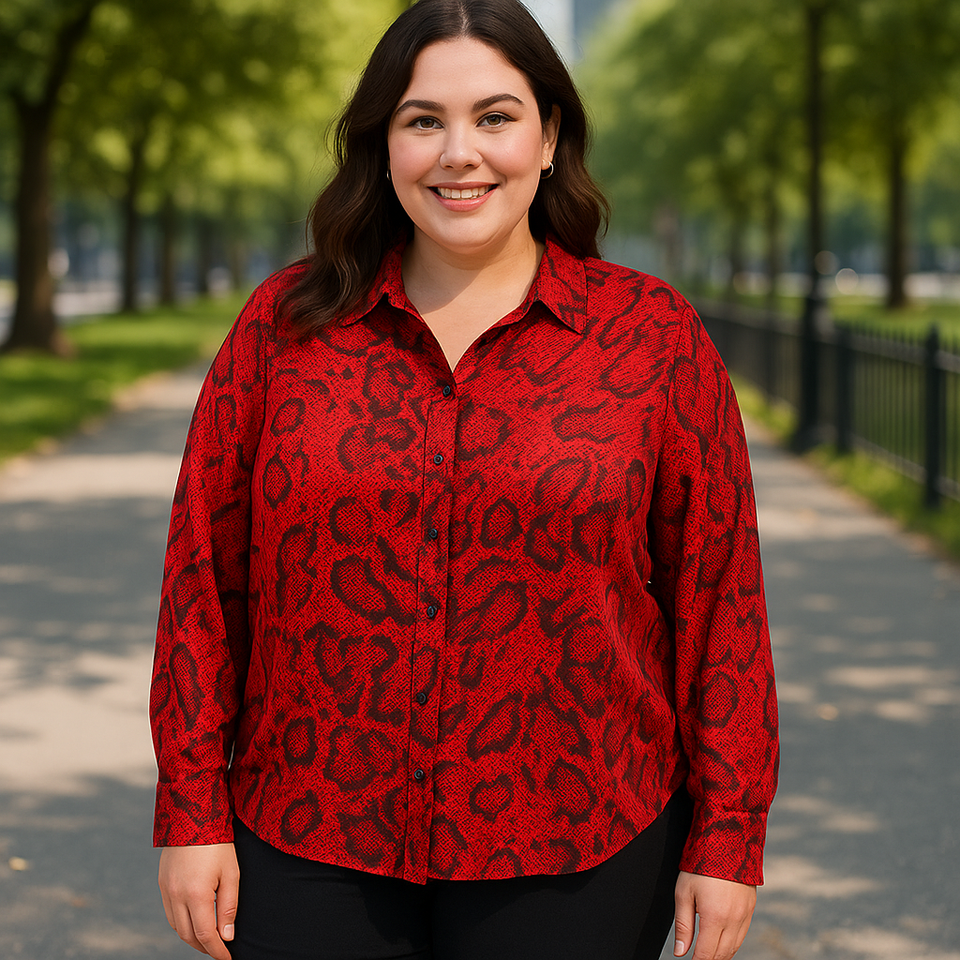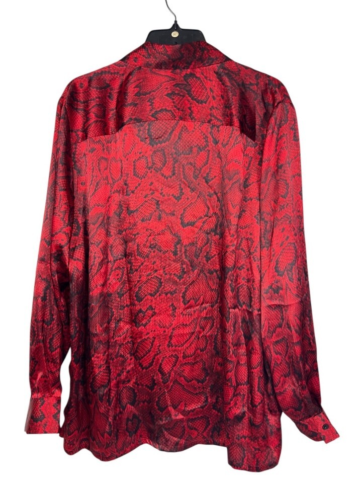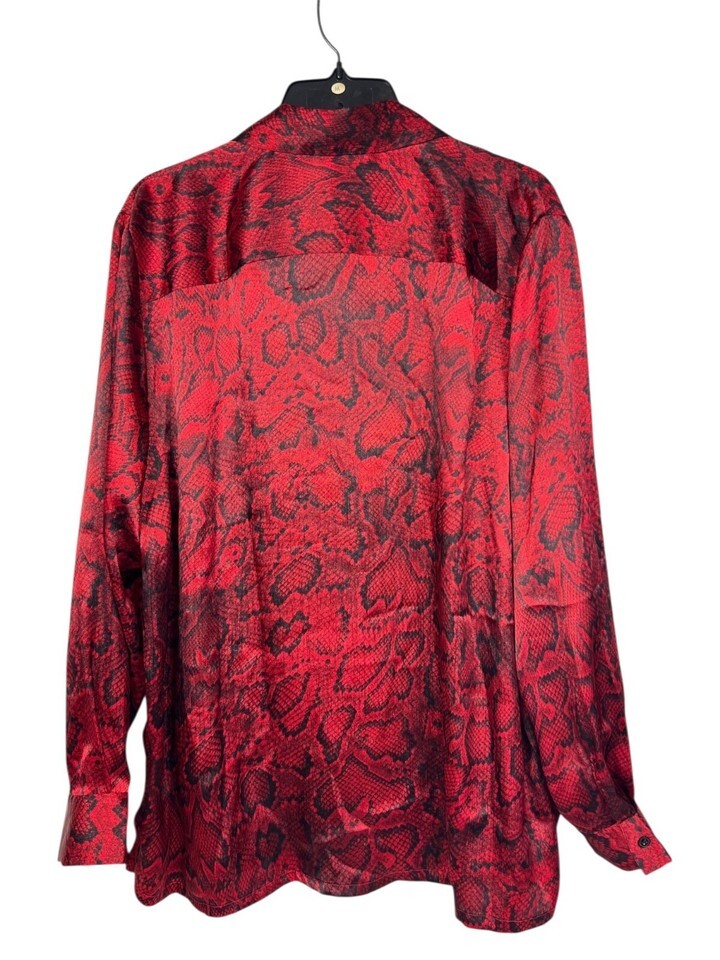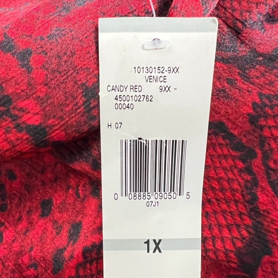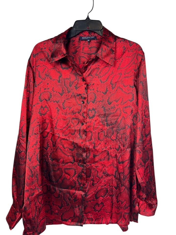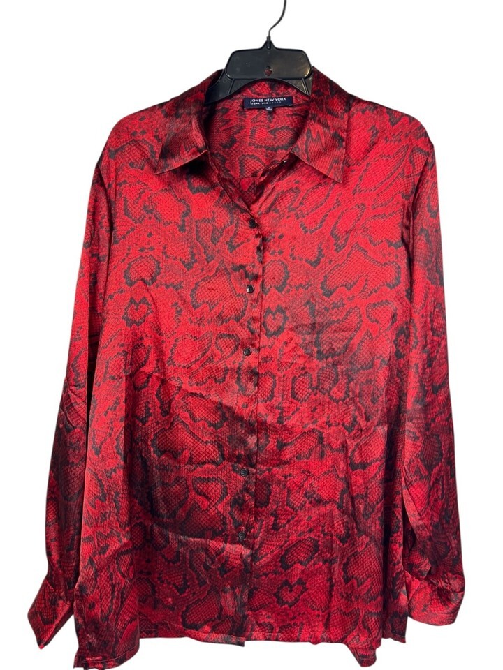 Jones New York Signature Woman Candy Red Snake Print Blouse 1X Button Down New