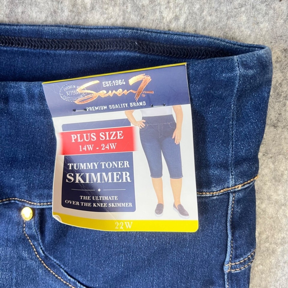 Seven7 Tummy Toner Skimmer Capri Blue Plus 22W Dark Wash Stretch Denim Pull-On
