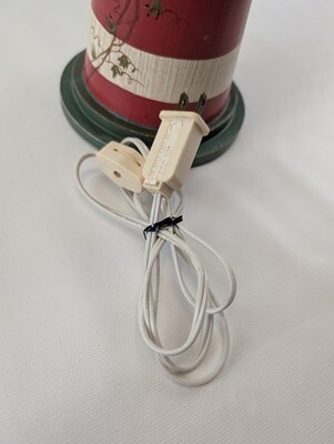 Coastal Lighthouse Lamp 17" Wood Red White Stripe Nautical Decor Accent Light. Condition is Used. Shipped with USPS Ground Advantage.