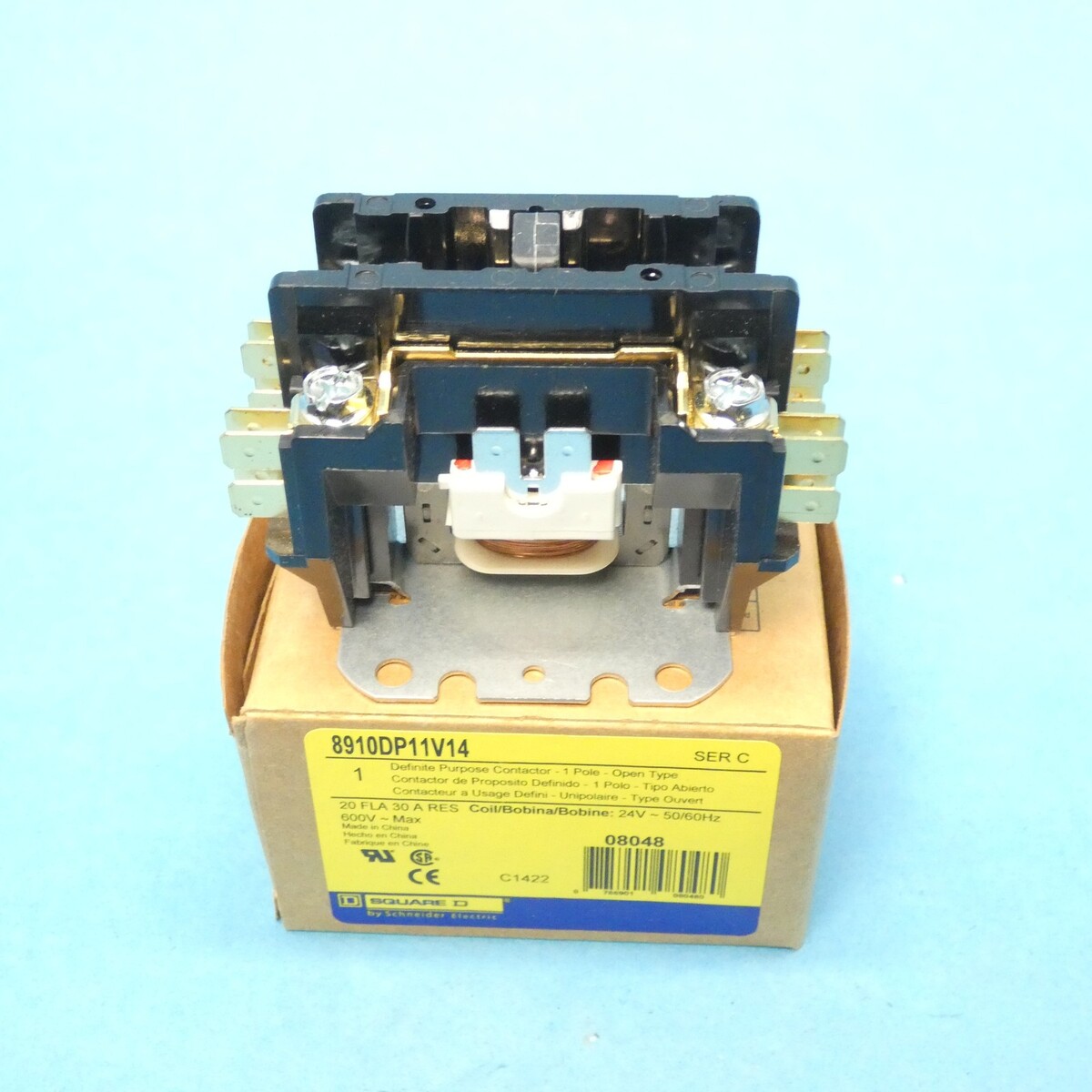 Square D 8910DP11V14 D.P. Contactor 1 Pole 20 FLA 24VAC Coil
