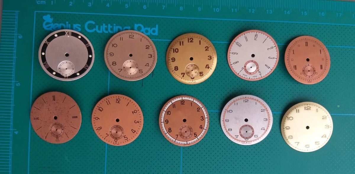 Job lot of Vintage 28mm Unbranded Watch Dials Salmon Two Tone Roman Etc.