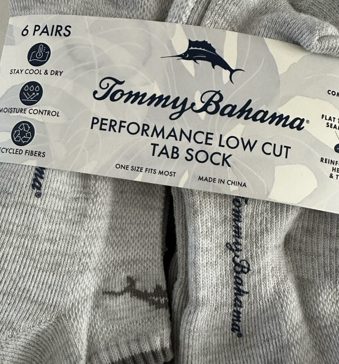 TOMMY BAHAMA PERFORMANCE ATHLETIC LOW CUT TAB SOCKS 6 PACK.NWT.MSRP$44.00
