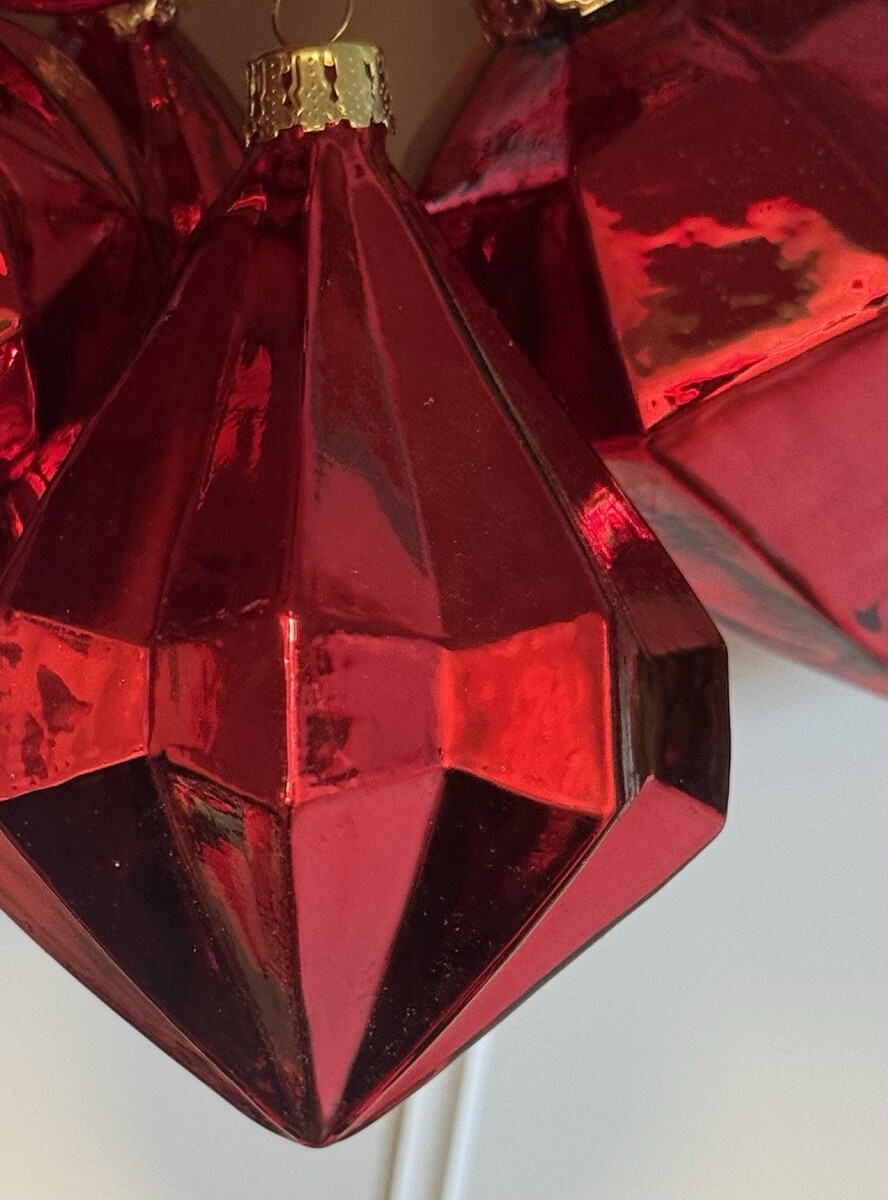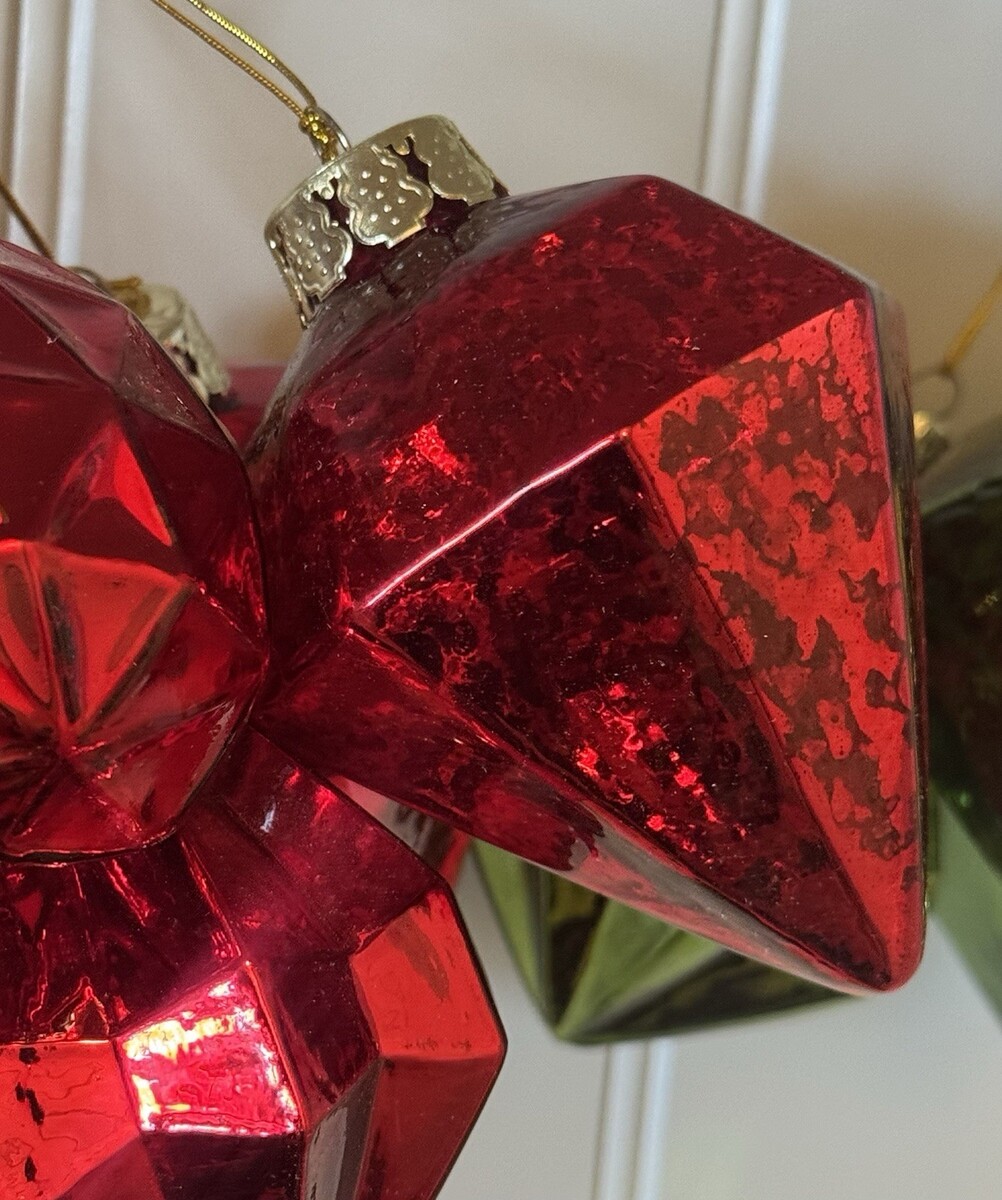 Vintage QVC Glass Faceted Ornaments Set of 17 Red & Green Diamond Mercury Chunky