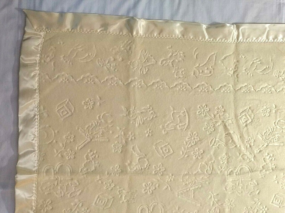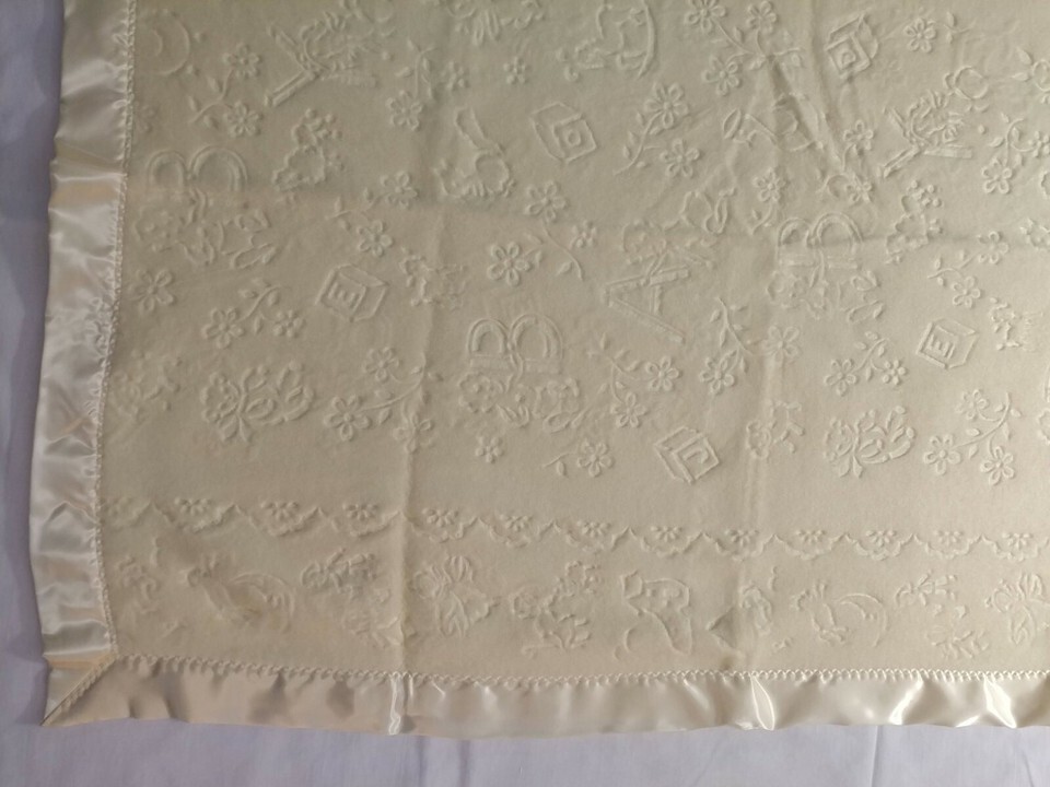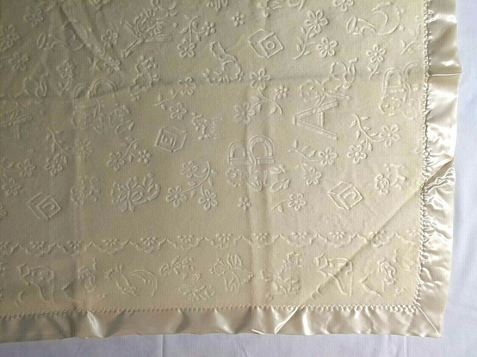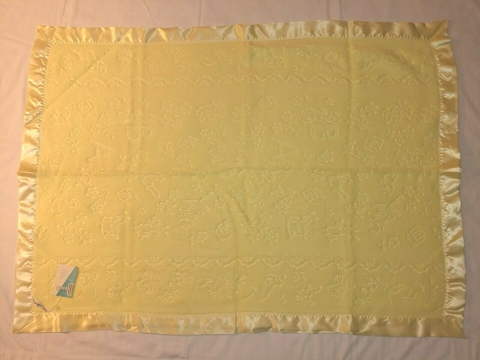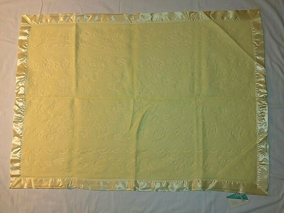 Vtg Yellow Baby Crib Blanket Satin Edge NEW and similar items
