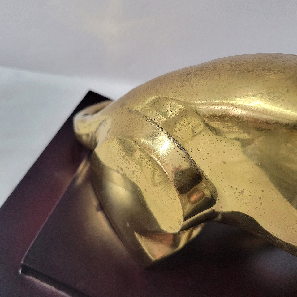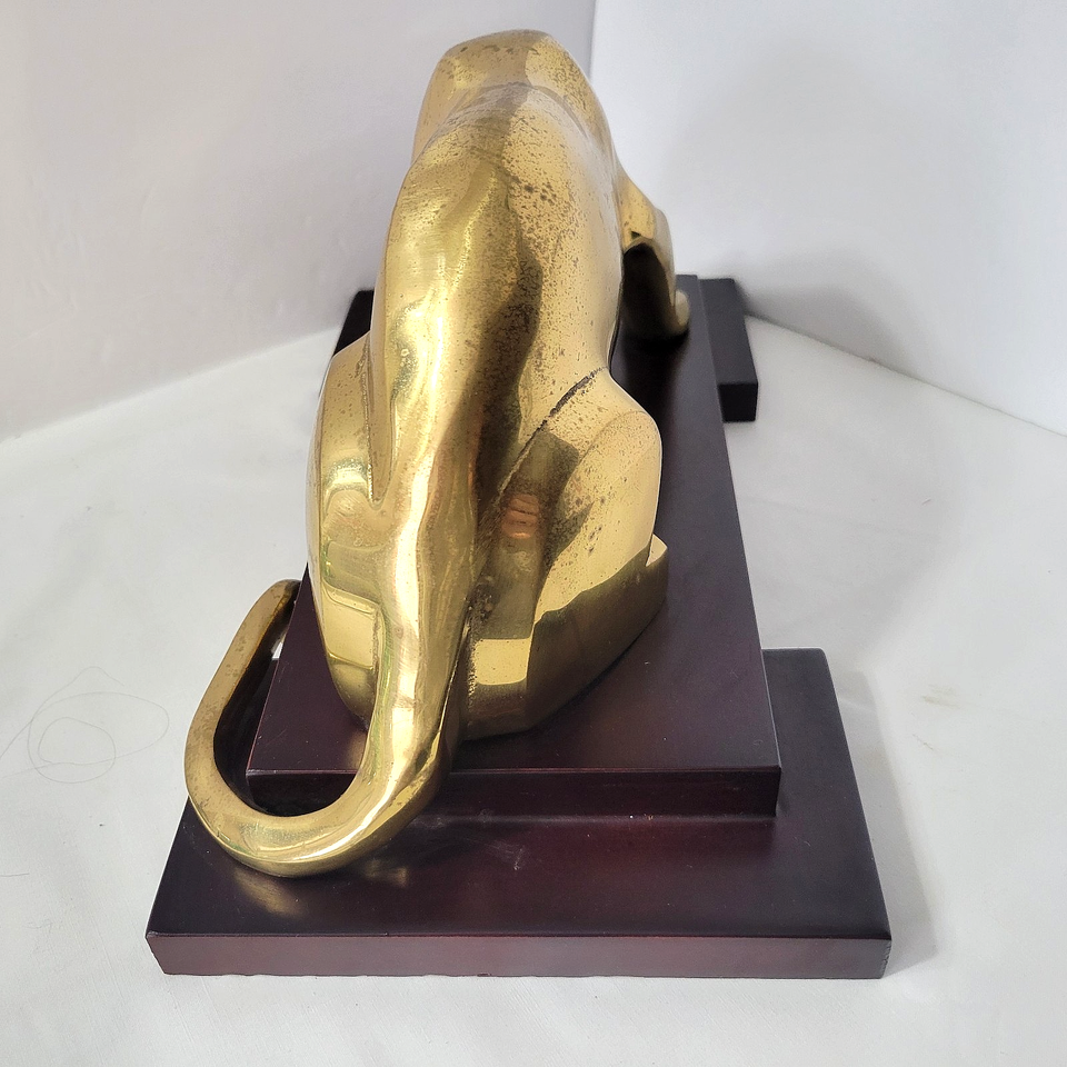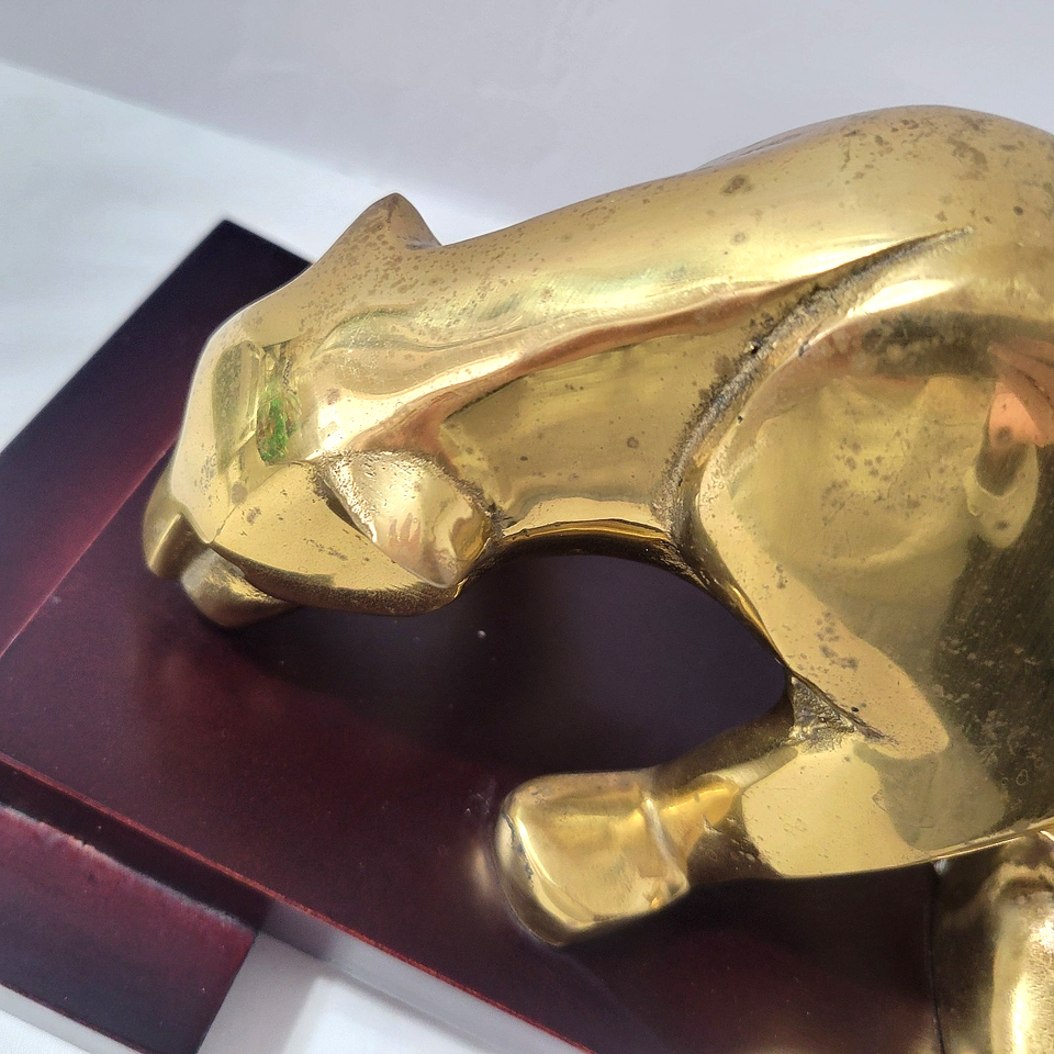 ART DECO Stylized Crouching PANTHER Jaguar Brass Statue on Base MCM Vintage READ