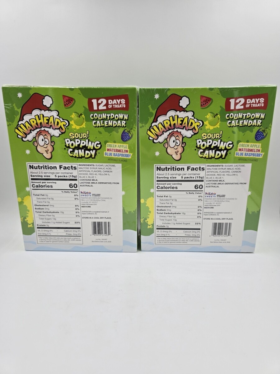 Warheads Sour! Popping Candy 12 Day Countdown Calendar Exp 07/08/26 - Lot of 2