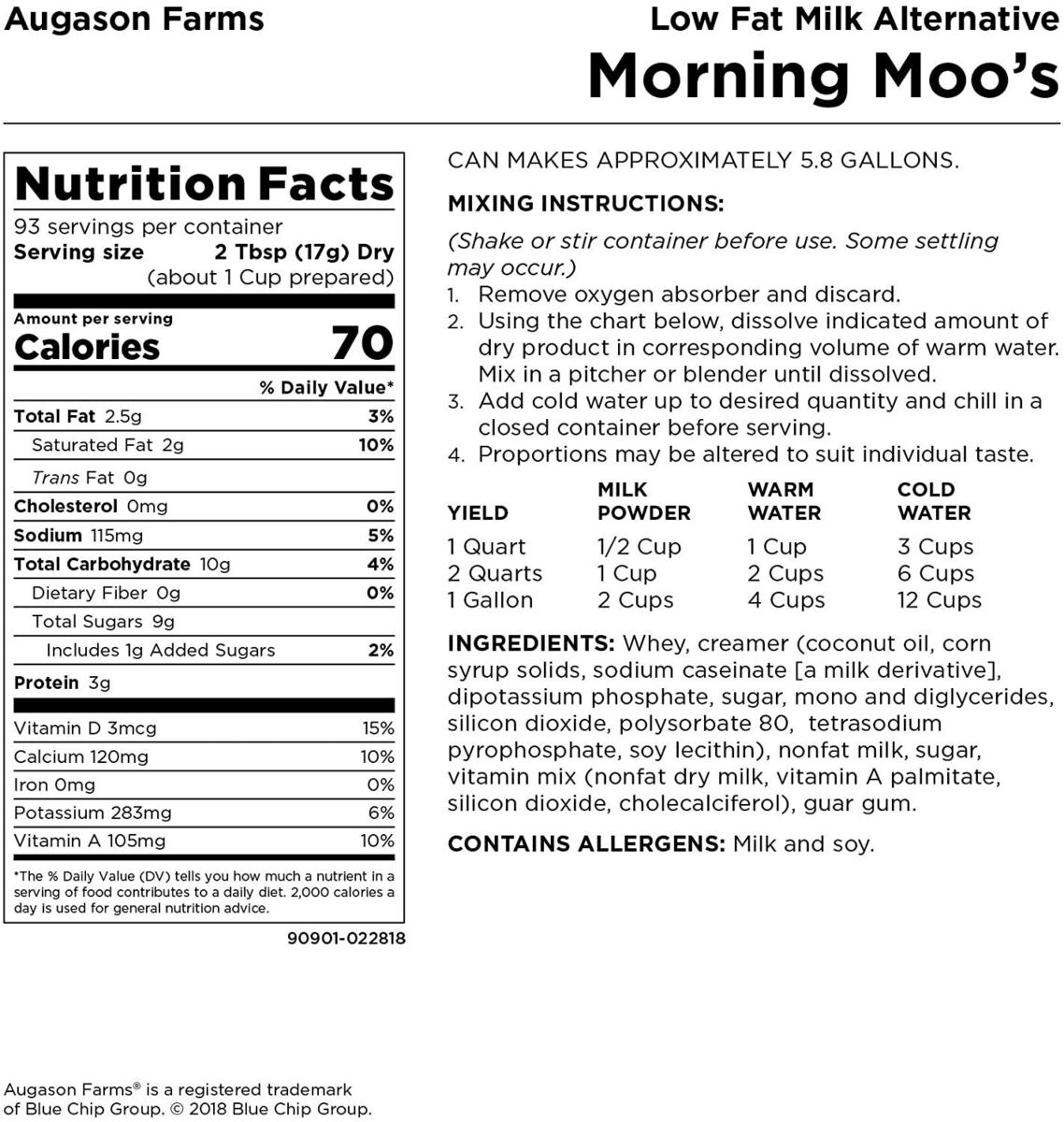 Augason Farms Morning Moo's Low Fat Milk Alternative 3 lbs 8oz #10 Can Long Term