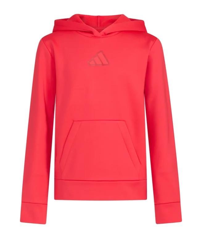 Adidas Boys Girls Hoodie Red Pullover Kangaroo Pocket 3-Bar Logo Midweight