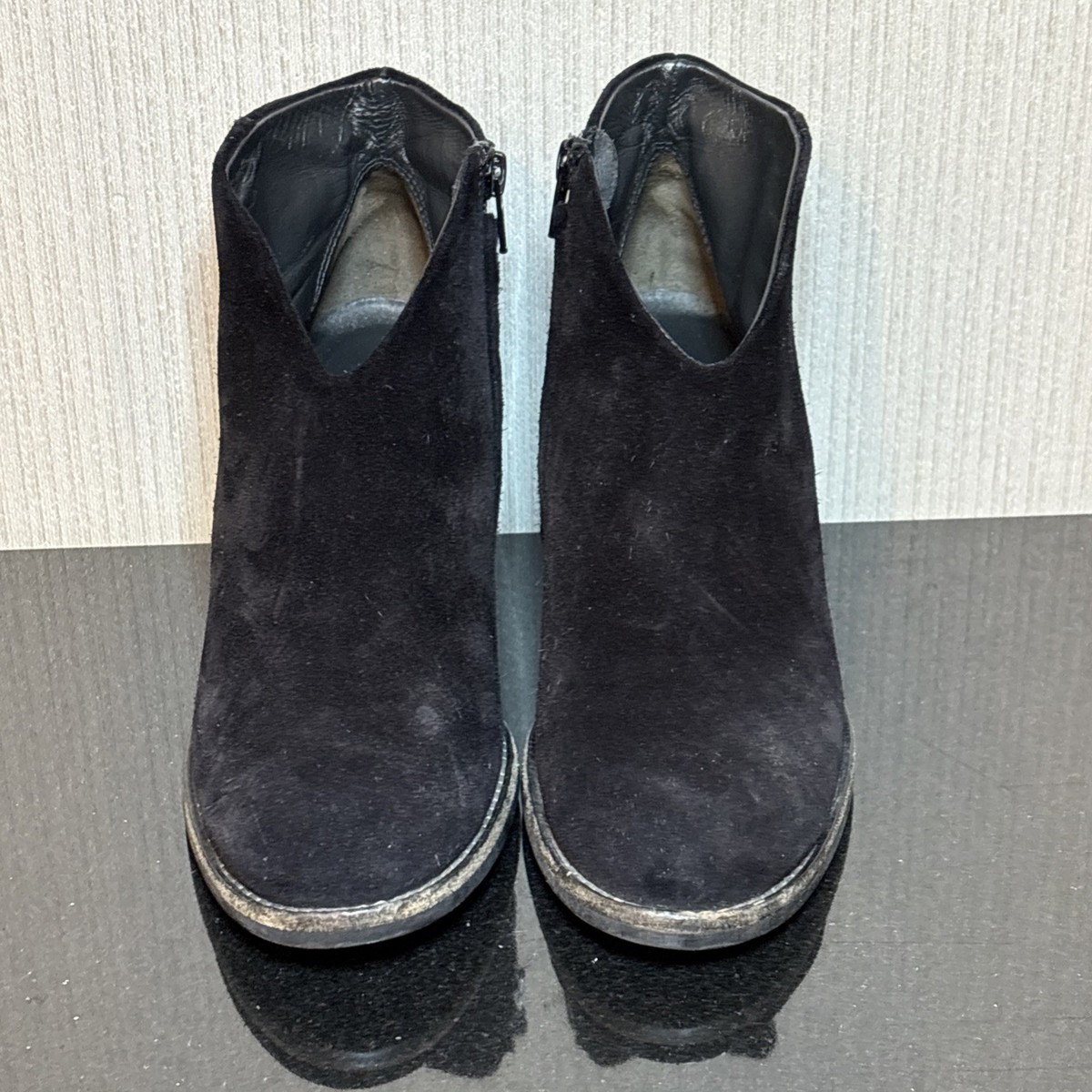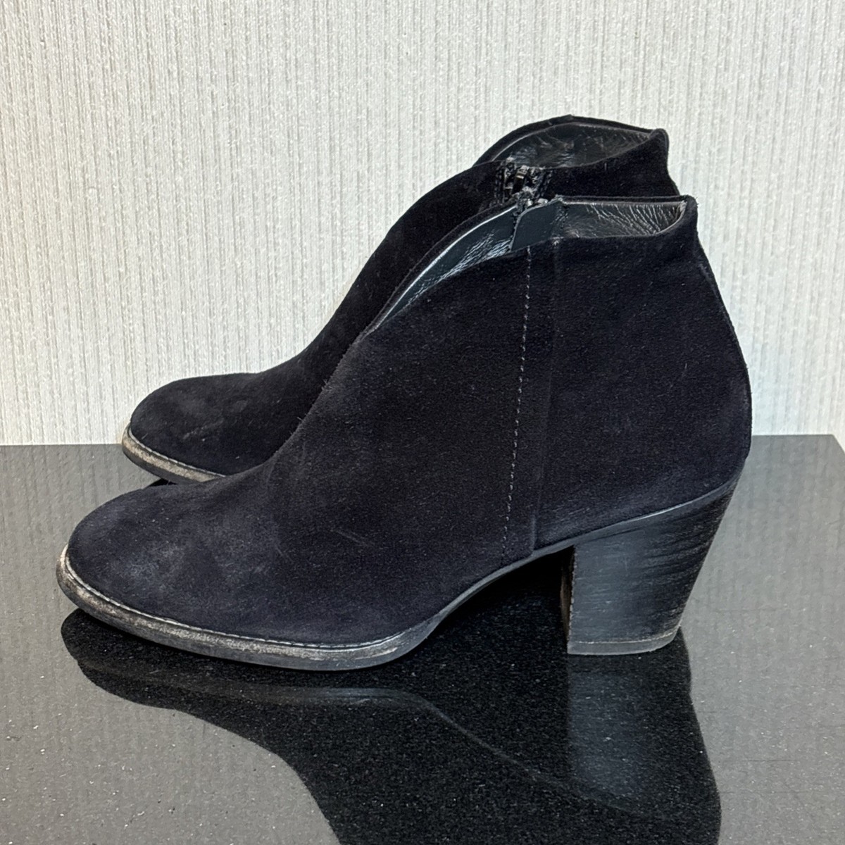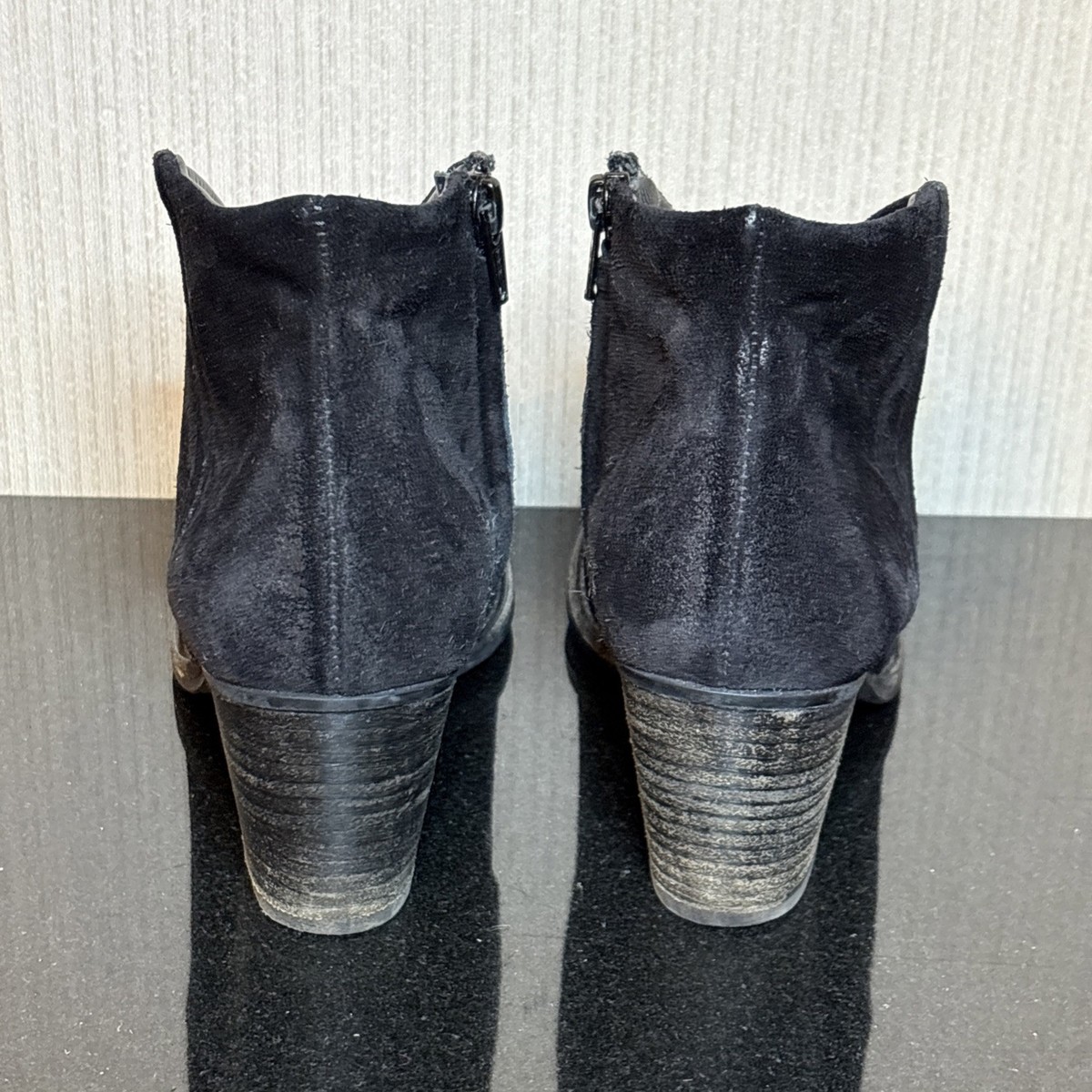Paul Green Delgado Ankle Boots Womens 7 Black Distressed Suede Mid Cuban Heel