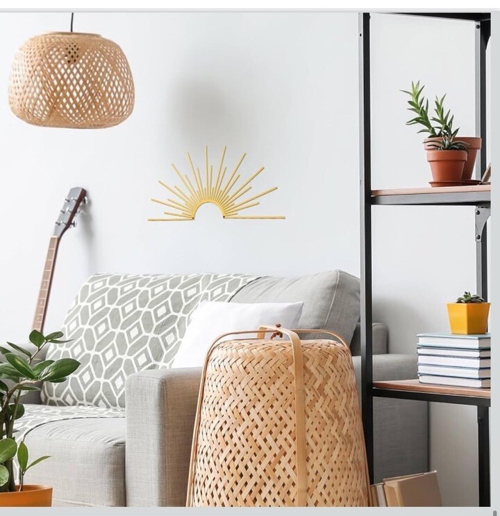 The Metal Sun Wall Art Decor by Jidecor is a stylish and abstract piece perfect for adding a touch of beachy charm to your home decor. This black sun design captures the essence of a sunrise or sunset, creating a warm and inviting atmosphere. With its sleek dimensions and lightweight design, it is easy to hang on the wall and instantly enhance any room with its unique and eye-catching aesthetic.