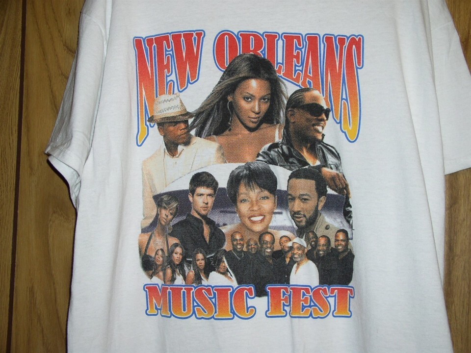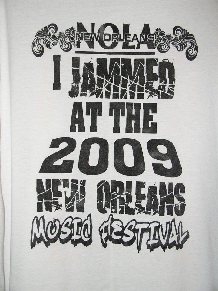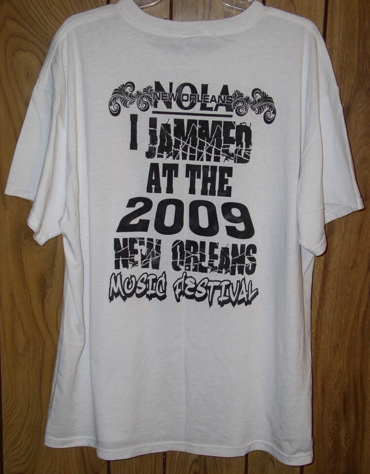 This is a scarce, alternate design, vintage concert t shirt entitled, "New Orleans Music Fest I Jammed At The 2009 New Orleans Music Festival" (Essence). Tag reads: Jerzees Z Heavyweight Blend. A terrific item for the fan or collector.