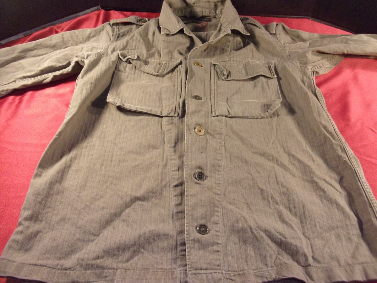DEFECTS: SMALL PAINT STAIN ON BACK AND MISSING COLLAR BUTTON